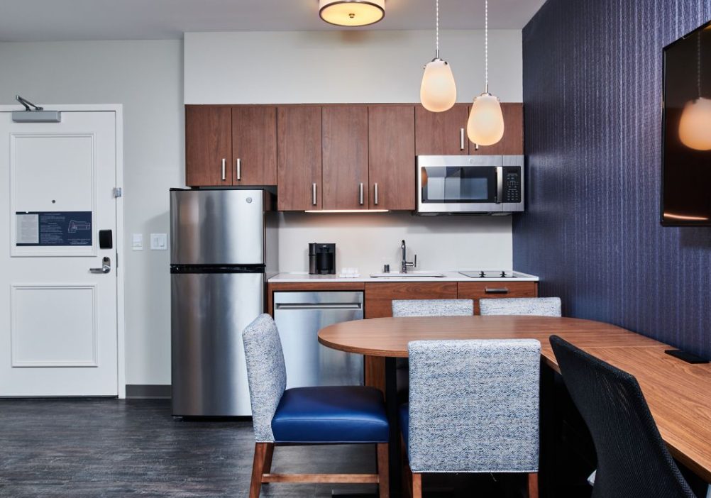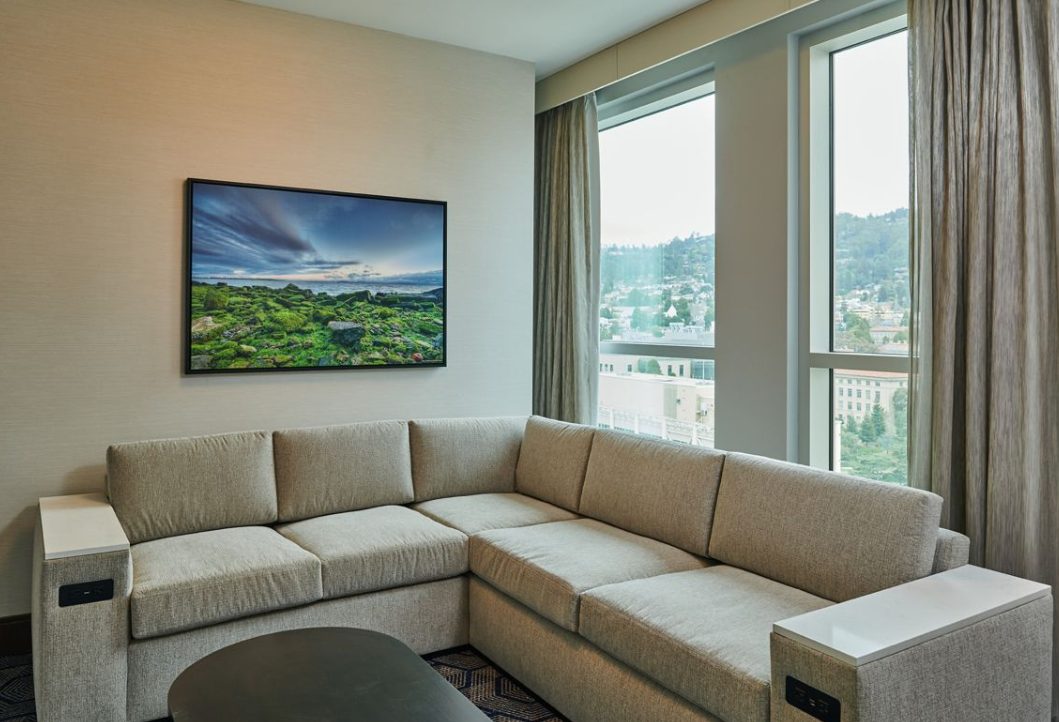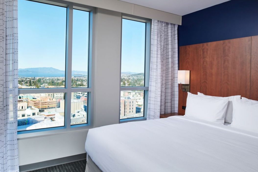 Experience an energizing getaway at the Gold Leed Certified Residence Inn Berkeley. Relax and recharge in expansive Berkeley, CA hotel accommodations with fully equipped kitchens, separate living spaces and a thoughtful collection of modern amenities. Gear up for a full day of business or sightseeing with a free breakfast buffet, serving healthy and hearty options. Our proximity to BART Rapid Transit allows you to explore a collection of nearby attractions, including University of California Berkeley, San Francisco, Berkeley Art Museum & Film Archive, Golden Gate Bridge & Berkeley Arts District. Host a successful event for up to 300 attendees in our 13,557 sq. ft. versatile indoor & outdoor event spaces. Punctuate a satisfying day of business or exploration with a visit to our 12th floor restaurant and bar where you will enjoy expansive views, entertainment and outdoor space. Complimentary Wi-Fi, a hotel Market and well-equipped fitness center, will provide the services you need to stay inspired.