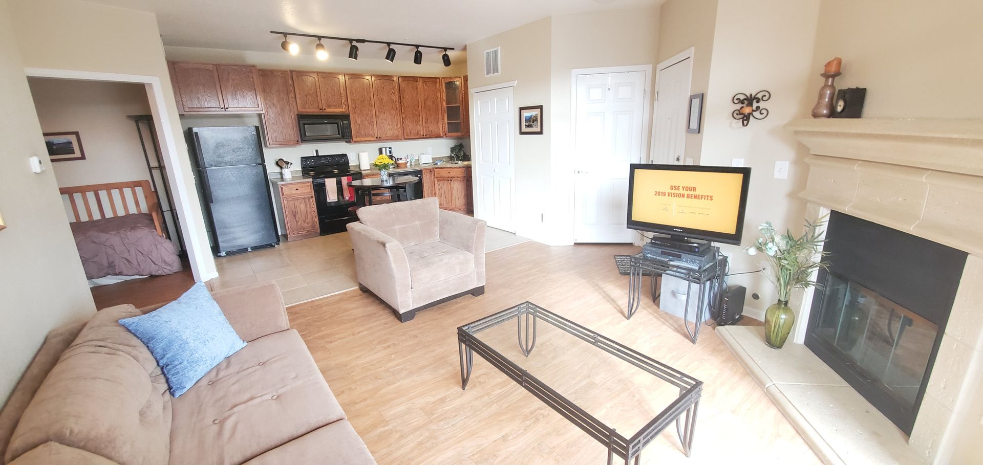 This furnished home is located just North of the Denver Tech Center off of Yosemite and 225. This one bedroom one bath also has a den with a daybed and a built-in desk and a large patio. Great if you are in town for work or school! Town Center Terrace has plenty of amenities including an outdoor swimming pool, an exercise facility, and a business center.