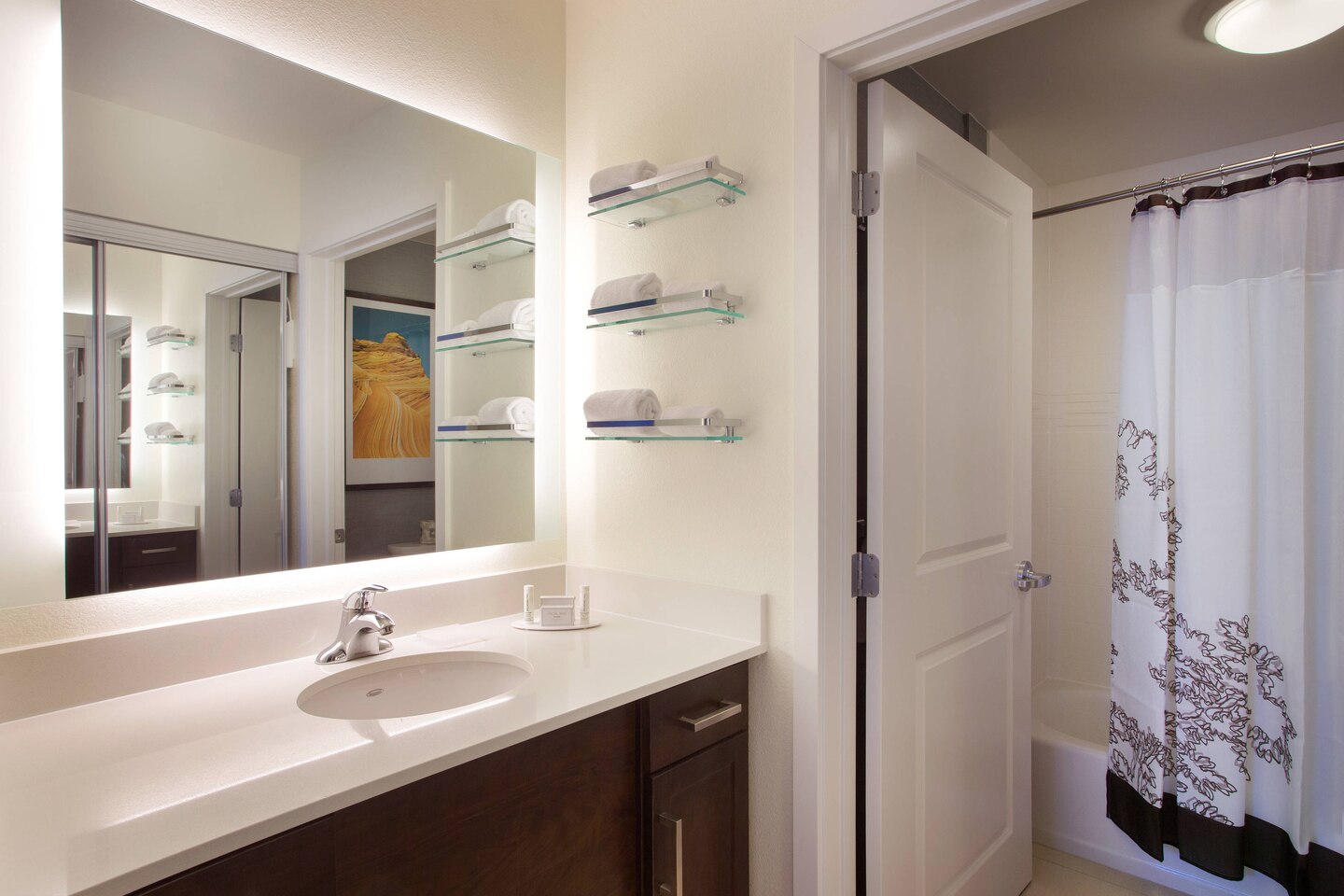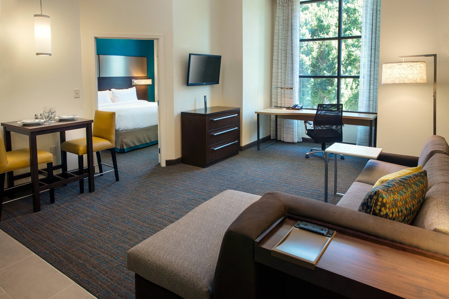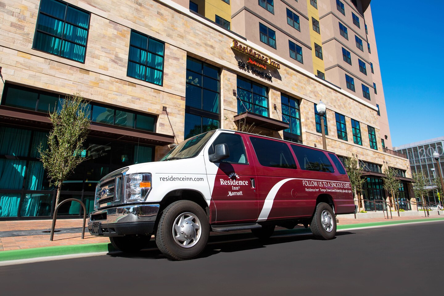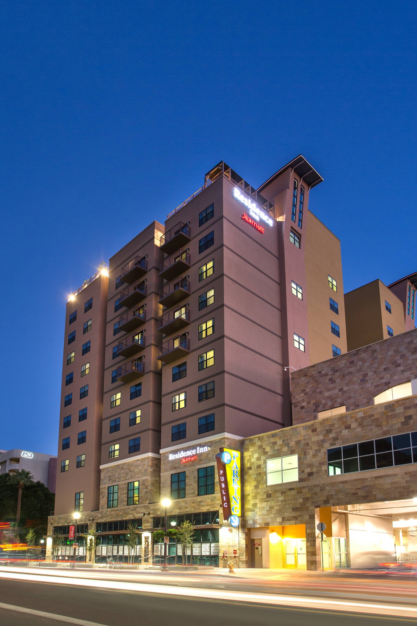 A contemporary home base for Arizona travel, Residence Inn Tempe Downtown/University is the ideal hotel for short and extended stays. In addition to being near Arizona State University's Tempe campus and its sports venues, our hotel is close to the Marquee Theatre and Phoenix Sky Harbor International Airport. When you stay in our hotel suites, you'll feel right at home with fully equipped kitchens, complimentary Wi-Fi and comfortable living areas. In the morning, enjoy our free breakfast serving some of your favorite classics. If you're hosting a social or business event at the hotel, book one of our four meeting rooms featuring custom catering options and AV equipment. If you'd rather spend your afternoon relaxing in the Arizona sun, take a swim in our outdoor rooftop pool. Stay active in our 24-hour fitness center with cardio equipment and free weights. At Residence Inn Tempe Downtown/University, you'll find modern comforts, thoughtful services and complimentary hotel amenities in a convenient location.