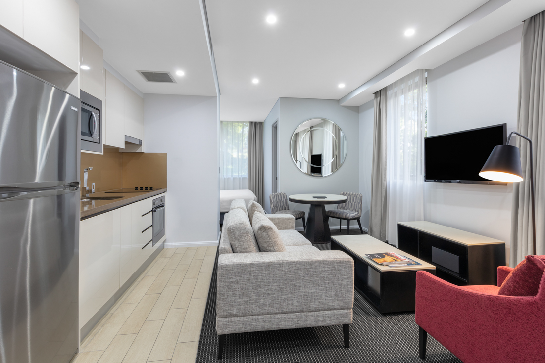 Meriton Suites North Ryde is conveniently located at Macquarie Business Park and the Macquarie Shopping Centre. Whether travelers are here for work or play, Meriton Suites North Ryde has a place for you. Each one of the beautifully-appointed suites, spread across 9 levels, has been designed with impressive floorplans, contemporary fit-outs, and the most stylish amenities to ensure an exceptional stay. Travelers can let their hair down with the superior resort-style facilities that include a large spa and sauna, an indoor heated pool, and a fully-equipped fitness centre, perfect for maintaining your fitness regime. Catered to business travelers, leisure seekers, and students, our guests are able to make the most of our complimentary high-speed Wi-Fi, accessible from all areas of the hotel including all suites.