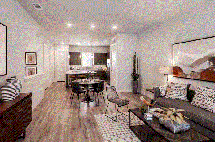 The Standard at Legacy offers studio to two-bedroom luxury apartments and two-story townhomes for lease in an all-inclusive community featuring a cabana-lined pool, clubhouse lounge with golf simulator, pet park and spa, and more. This complex features upscale designs for entertaining your guests and relaxing in your home. Enjoy wood-style flooring, gourmet kitchens, high ceilings, and a full-size washer and dryer in a variety of floor plan sizes available at the flexible lease length of your choice. Add 24/7 on-call maintenance and a professional management staff on-site six days a week to create a maintenance-free lifestyle.