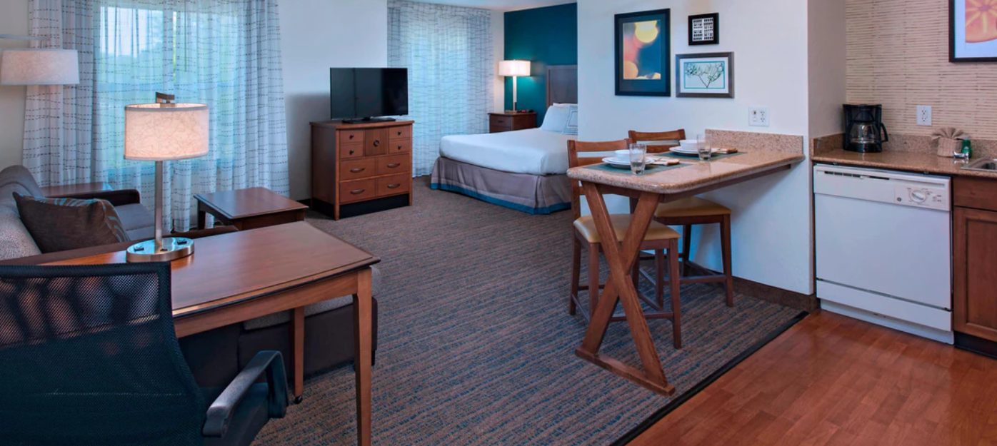 Residence Inn , Columbia, MO is located just off I-70 and Hwy 63. We are minutes from the University of Missouri, State Farm Campus, Kraft Foods, and 3M, as well as Stephens College and historic downtown. Our Columbia hotel is designed to provide you with everything you need whether you're with us for a few days, a few weeks, or a few months. We offer free grab-n-go breakfast daily and complimentary grocery delivery service that will fill your refrigerator and satisfy your cravings. Due to current circumstances, we are not serving breakfast. Free WiFi for connecting to work and staying connected to friends and family. Keep your routine with our sport court, indoor pool, and fitness center. Relax in your spacious guest suite featuring separate living and sleeping areas, as well as fully-equipped kitchens.