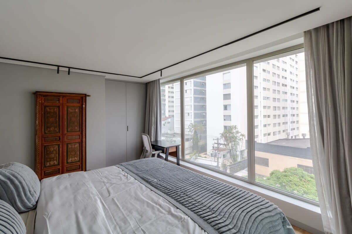 Loft do Colecionador is a stylish one-bedroom apartment spanning 710 sqft/ 66 sqm in the vibrant Jardins neighborhood of São Paulo. Located just steps away from São Paulo's iconic Museum of Art and the tranquil Trianon Park, it offers an ideal base for travelers interested in art exhibitions, relaxation amidst natural beauty, or exploring the diverse culinary scene. The apartment itself features fantastic community amenities including a gym, pool, and a communal laundry room. The Space Upon entering, you'll be greeted by the inviting living room featuring a comfortable sofa bed and a flat-screen TV. The adjacent kitchen is fully equipped with modern appliances and complete dinnerware. From the living room, step out onto the screened balcony for a breath of fresh air, and conveniently located nearby is a bathroom for your comfort and convenience. Upstairs, the bedroom awaits with a spacious king-size bed, complemented by a desk and chair. The bathroom on this level offers a luxurious experience with its walk-in rainfall shower. Please be informed that this home strictly prohibits parties, ensuring a peaceful and enjoyable stay for all guests. Neighborhood Jardins is one of the wealthiest neighborhoods of the entire city, and one of the best residential locations in town. Within Jardins you'll find Jardim Paulista, Jardim América, Jardim Europa and Jardim Paulistano, which extend southwest from the high rises of the famous Avenida Paulista. Jardins is dotted with a great variety of famous restaurants, beautiful cafés and high end boutiques. It's one of the nicest areas to walk around and explore on a sunny day. Unless you have a specific site to visit elsewhere, there really is little reason to leave. Other things to note VERY IMPORTANT: You may be asked to provide a copy of your official government-issued photo ID, confirm your contact information, and, in some instances, complete a criminal background check. The information is collected for screening and verification only and is not stored or used for any other purposes. By completing the reservation you agree to the following: •You agree to be bound by our rental terms and conditions. •You acknowledge that you will be required to provide a copy of a valid government-issued ID •You acknowledge that you may be required to undergo a background check if mandated by the property management company or the building, as stated in accordance with your rental agreement and condition of the booking. •You understand that your check-in instructions might be withheld until you have successfully completed our verification portal Home truth: - There is hot water in the bathroom, but not in the kitchen sink and laundry sink. - There's a communal laundry room in the building
