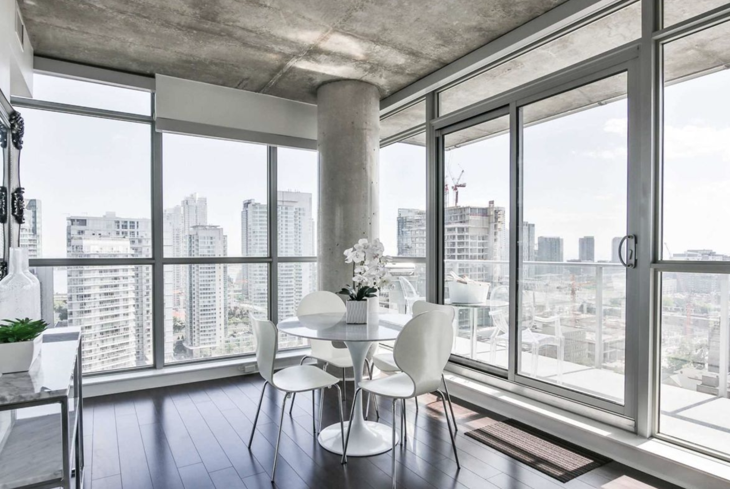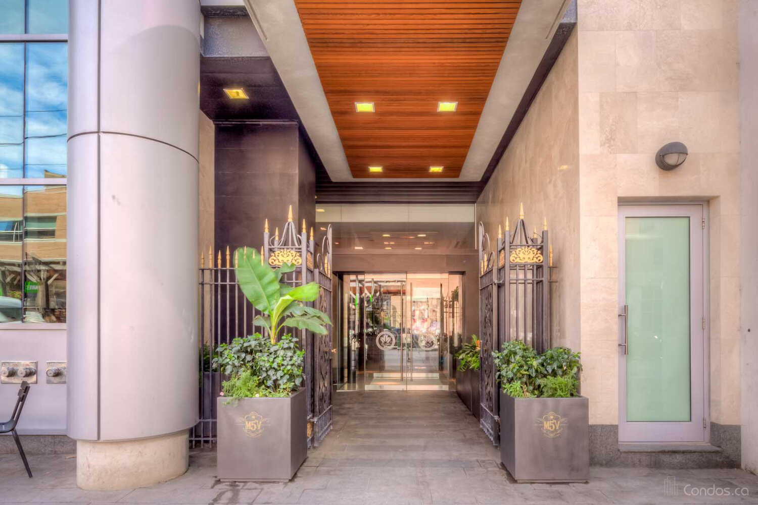 The 35-story M5V building is a display of beauty and innovation. Located at 375 King Street West, it serves as a model for sustainability in design and development in the downtown condominium market. This is a building of high ideals where design and contemporary urban philosophy unite in a luxurious example of modern living. Living at the M5V also means prime location, as it provides corporate travelers with access to the best of the Entertainment District and the Toronto downtown core while offering spectacular views of the city and Lake Ontario. Plus, the building has an energetic list of amenities including the fully equipped fitness centre, yoga and dance studios, and a relaxing outdoor sundeck and lounge with BBQ stations. Enjoy Toronto at M5V.
