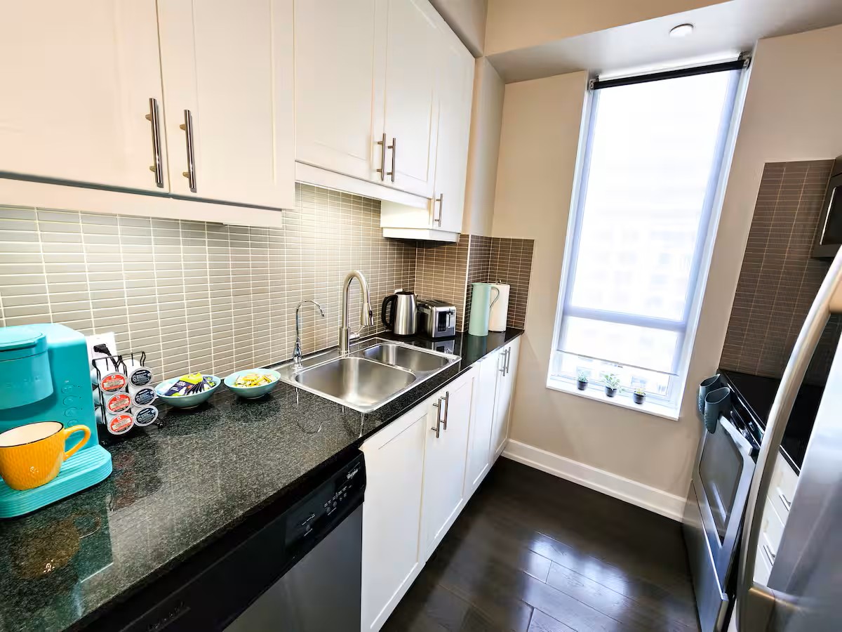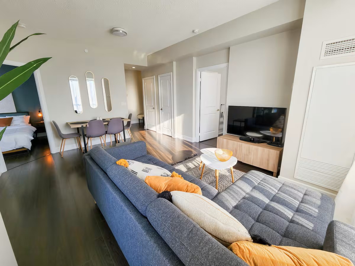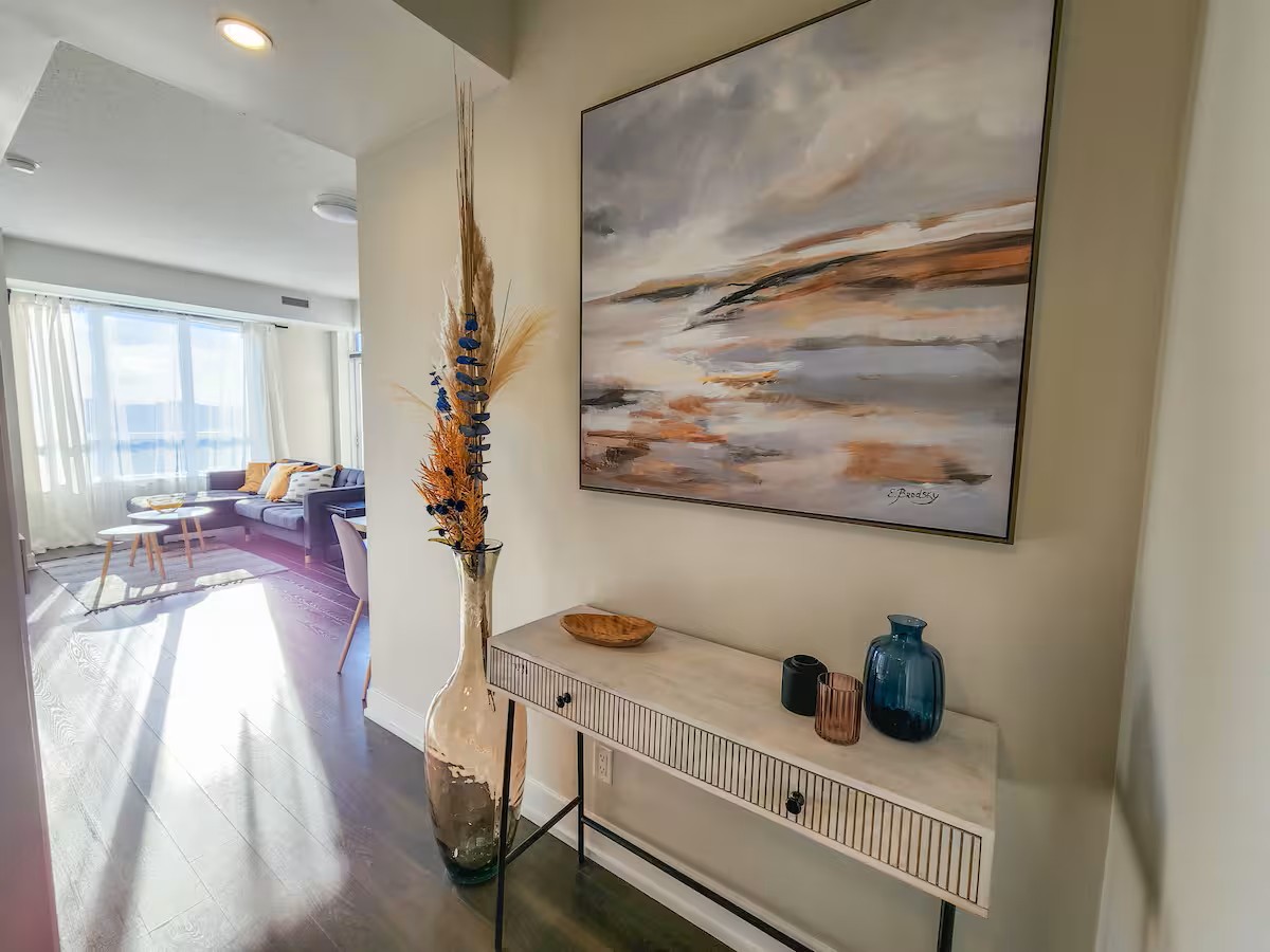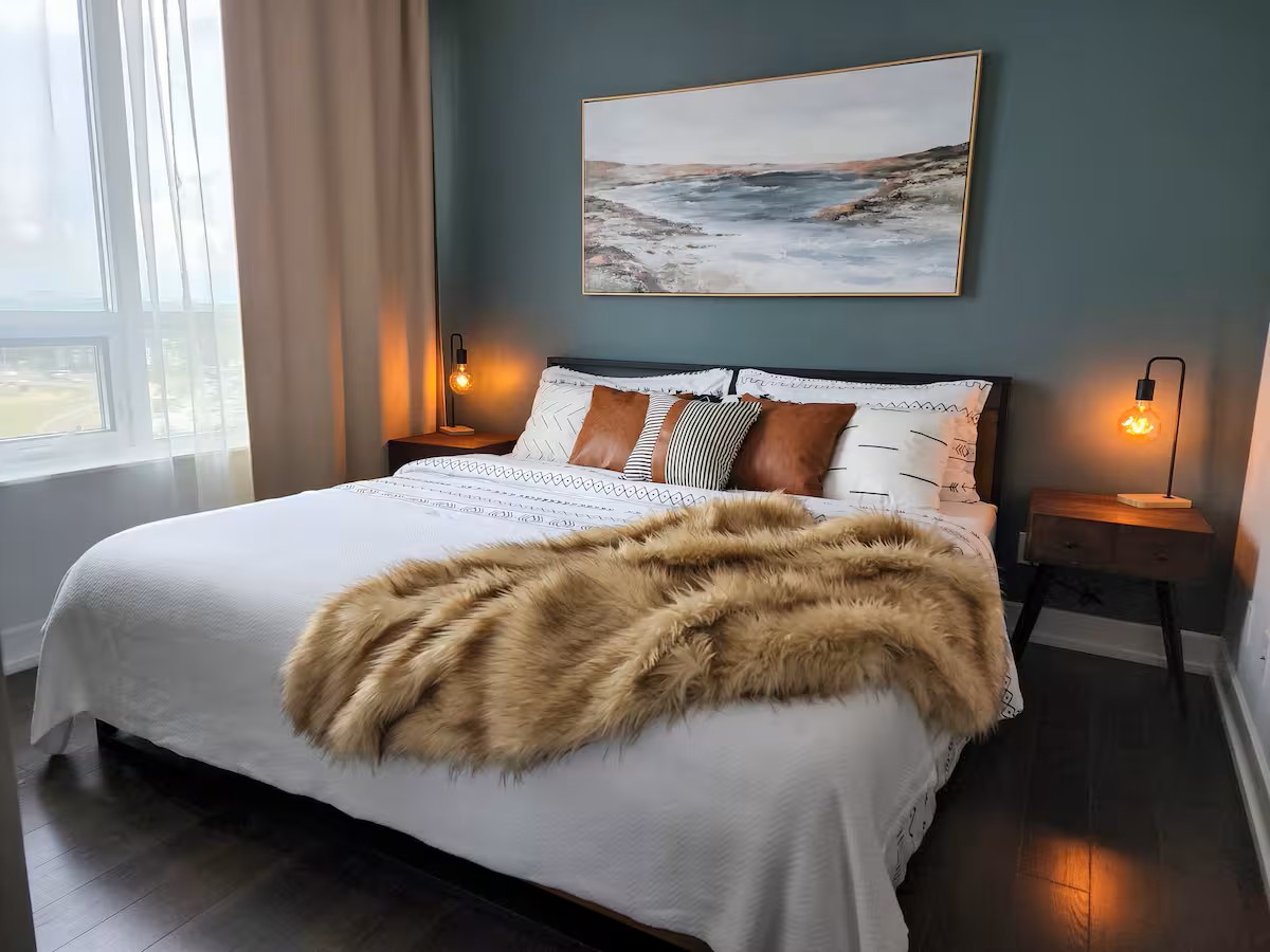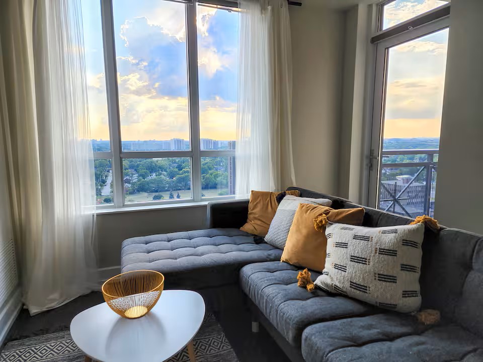 Great location with convenient parking. 5 minute from Toronto Pearson Airport, 10 minutes to Downtown, 3 minutes to Sherway Gardens. Access to all major highways & public transportation. Guests have access to all amenities such as: Pool, Sauna, Gym, BBQs Terrace & more. Corner unit, high floor level, with beautiful views. Brand new furniture and upgrades. High-end mattresses. Dedicated working space. High-speed 400Mb/s internet.
