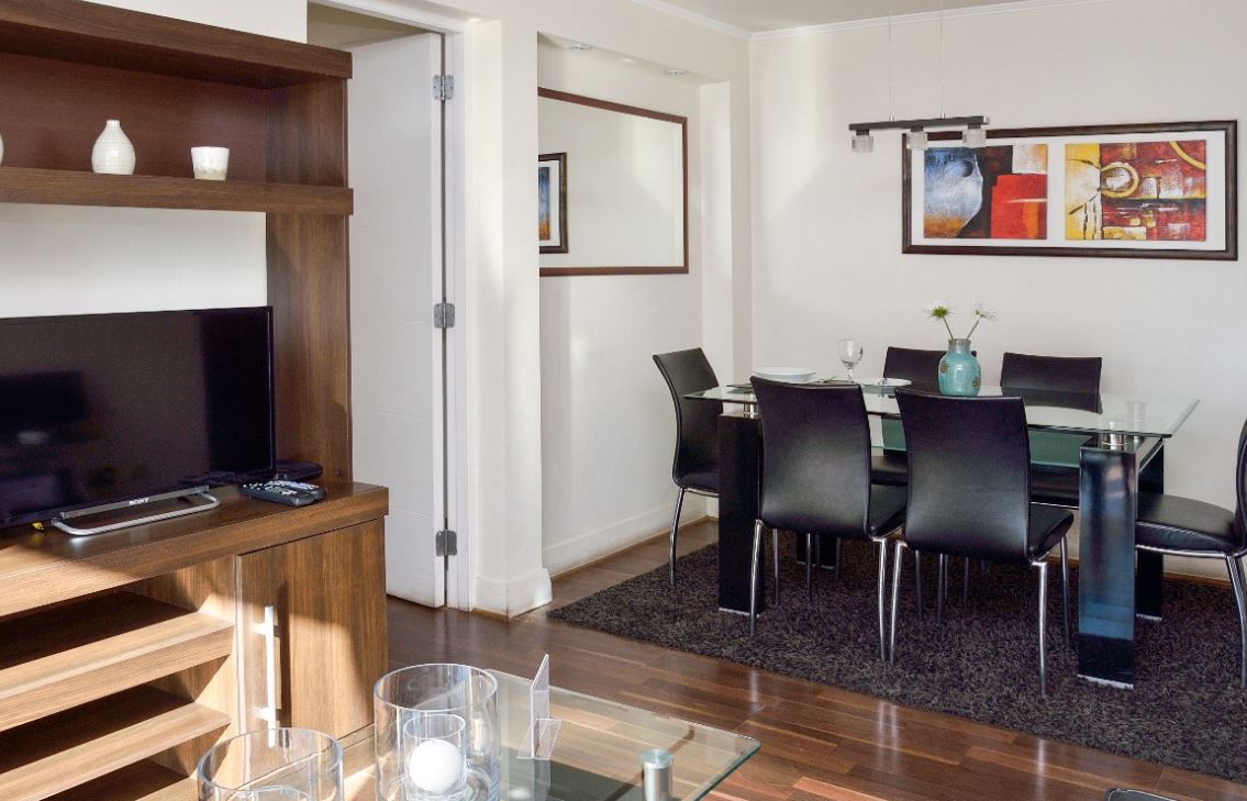 Corporate travelers can enjoy spacious floor plans, luxurious amenities, and views of the Santiago skyline when staying at Ziba III.