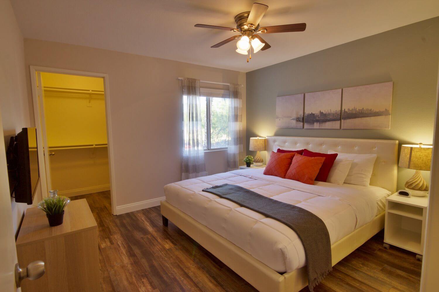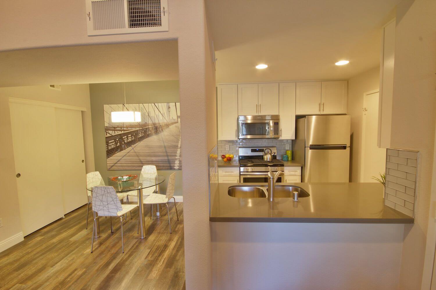 Nestled near Summerlin and South West Las Vegas, this amazing fully furnished executive rental is located in the Rancho Viejo Condominium complex. This location allows close proximity to the world famous Las Vegas Strip, as well as easy access to I-215 freeway. The Las Vegas Strip is just 7 minutes away! The Rancho Viejo community offers all of our residents a pool, Jacuzzi, a clubhouse with movie room, and a fitness center. Enjoy this beautifully furnished 1-bedroom condo with its welcoming and newly renovated interior complete with with quartz countertops, tile-wood flooring throughout, and a full sized kitchen complete with a breakfast bar and stainless steel appliances. Fully furnished throughout and appointed with housewares, kitchenware, fresh towels and linens. There is also a separate laundry room equipped with full sized washer and dryer. All the utilities are included in the affordable monthly rate, along with WIFI! Just bring your suitcase!