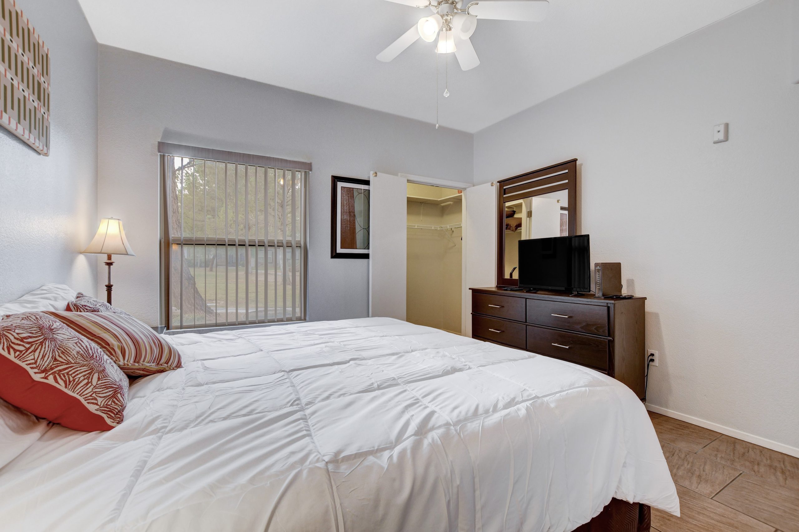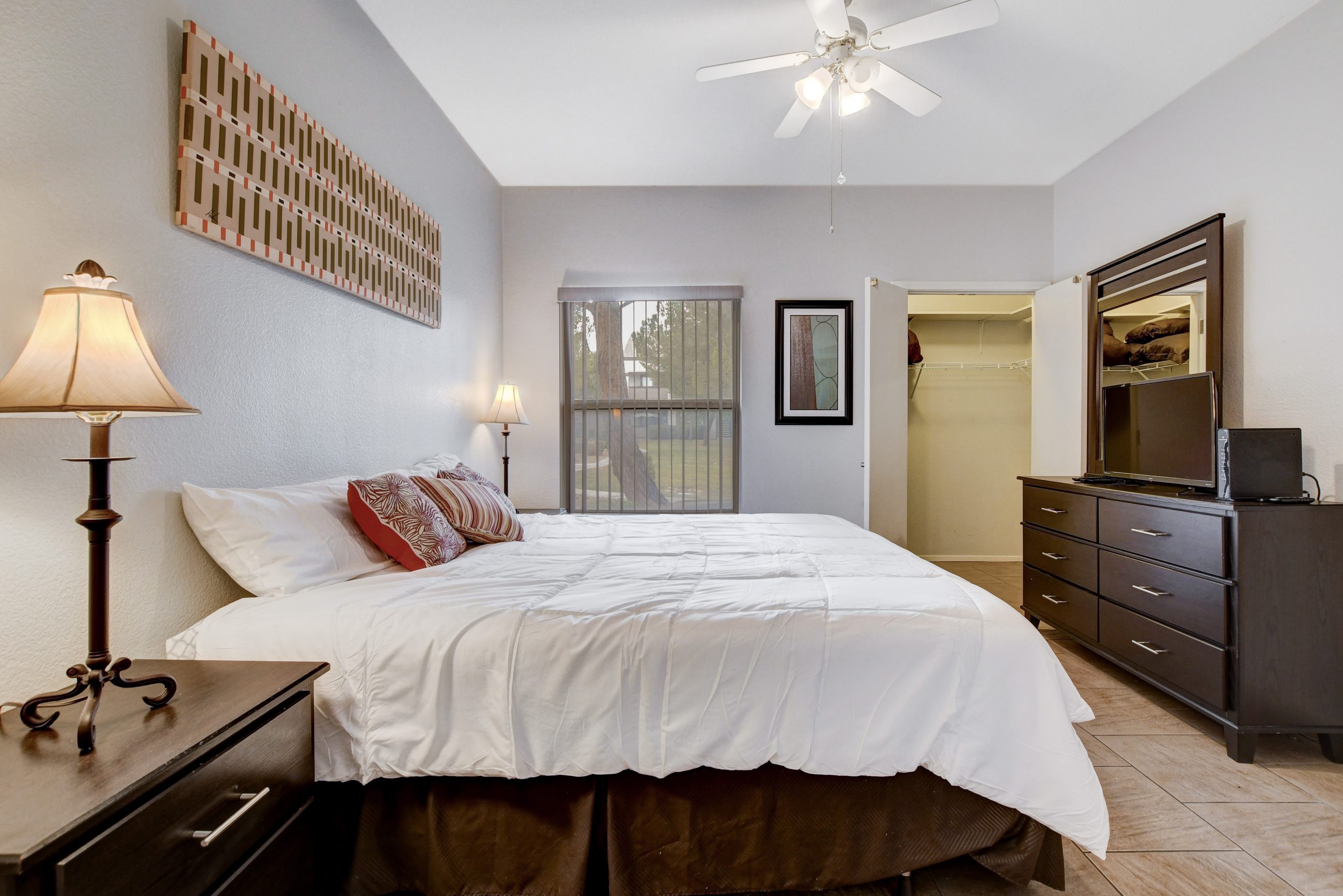 Enjoy the community pool, spa, fitness center, park, and playground area. All housewares, linens, utilities, Youtube TV, and WiFi are included. One covered carport space, patio, and washer and dryer included with your stay. Excellent location with close proximity to shopping, dining, and I215.
