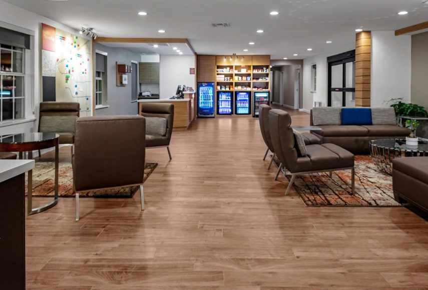 The TownePlace Suites Dallas Plano has been newly renovated and offers the comforts of home for extended stay guests with a soothing, modern look in an all-suite Plano hotel. Surrounded by a booming Fortune 500 business community and conveniently located near the corporate offices of Ericsson, Hewlett-Packard, Pepsico, etc., the TownePlace Suites Dallas Plano hotel is the perfect place to stay on business in Plano. This spacious all-suite extended-stay hotel in Plano, TX, features studio suites with fully-equipped kitchens, Wi-Fi and 43" Flat screen HD TVs. We are a pet-friendly Plano hotel with on-site laundry, fitness center and outdoor pool to make guests feel at home. Our location makes getting to Frisco and shopping at Stonebriar Centre or The Shops at Legacy quick and easy. Dr. Pepper Ballpark and the Frisco Rough Riders baseball club are near this all-suite hotel in Plano Texas.