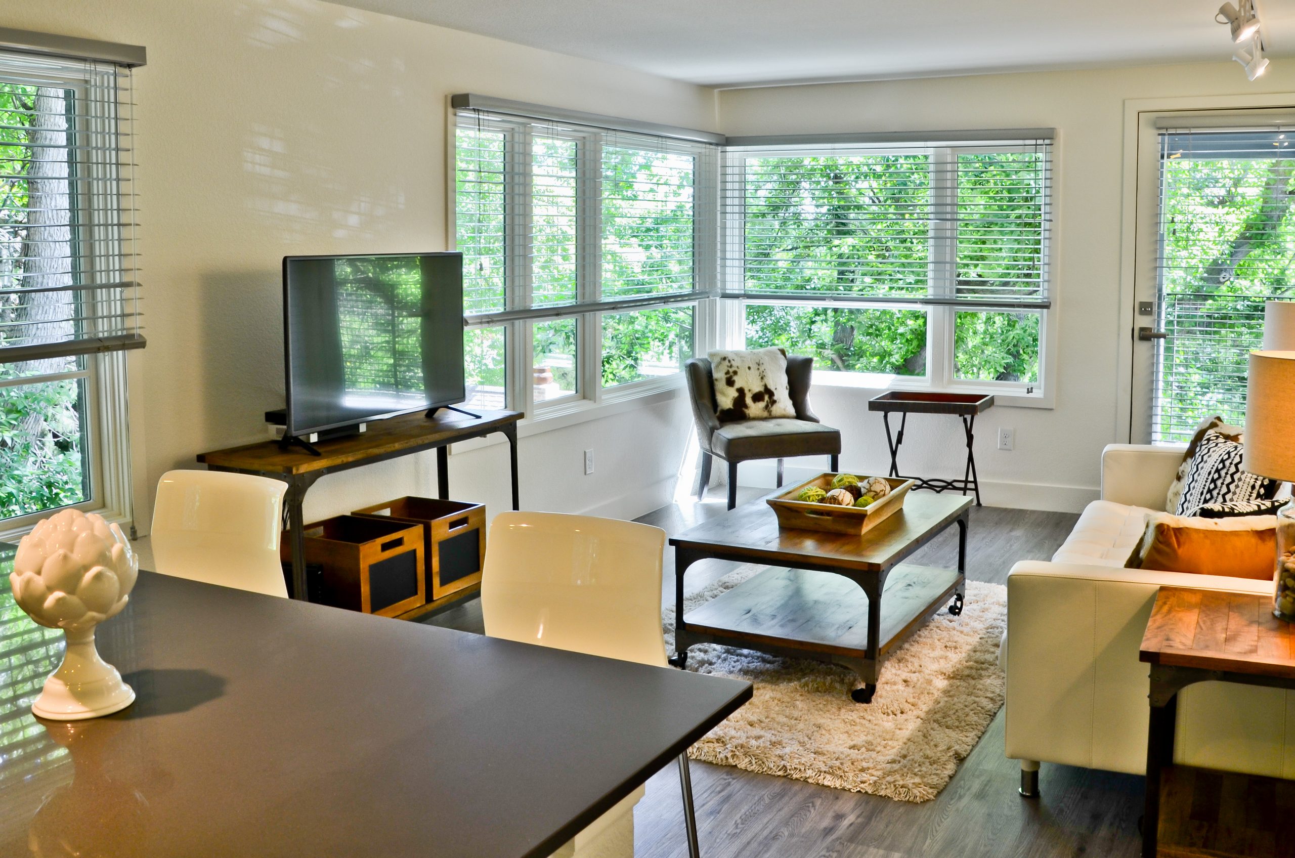 Maxwell Lofts is an incredible luxury corporate property located in one of Boulder’s most sought after neighborhoods. Located just a few blocks from the attractions of Pearl Street, this property features a beautiful and serene setting accessible by its own private covered bridge over a creek. Surrounded by mature trees and new landscaping, every detail of the building has been thoughtfully crafted by a local Boulder designer and architect. Step inside to the modern interiors and find grey washed plank wood floors, exposed brick walls, and spectacular chef’s kitchens with granite counters, modern vintage light fixtures, and high-end appliances. Make the most of your Boulder travels at Maxwell Lofts.