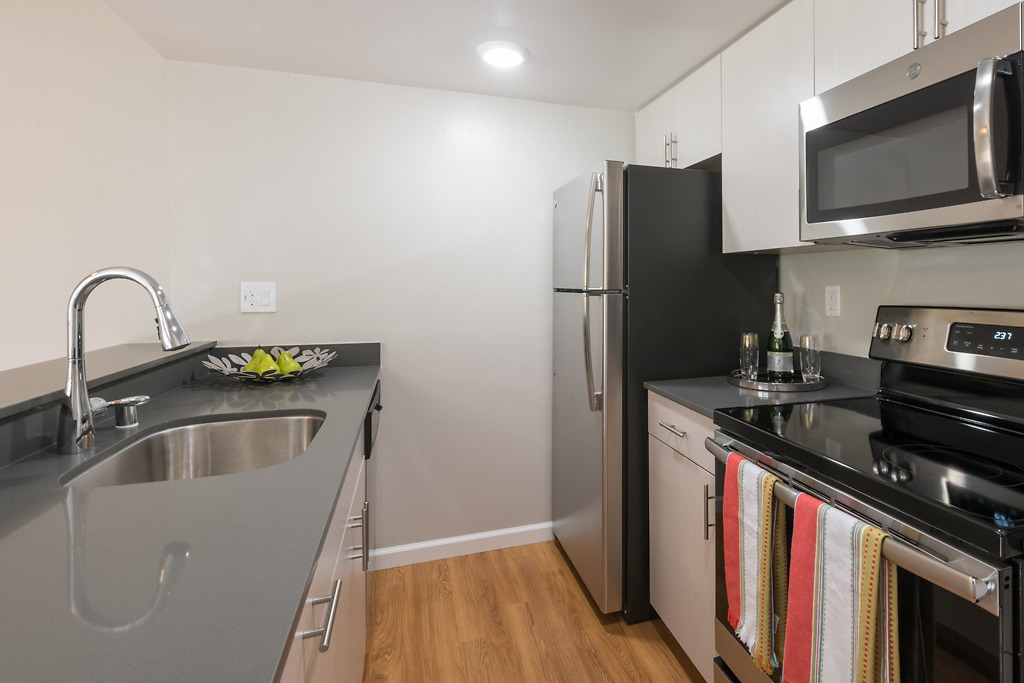 Each residence is designed for your comfort with conveniences like central air conditioning and an in-home washer and dryer. Select homes showcase additional elements like vaulted ceilings, a fireplace, or a private patio or balcony. Just outside your door, enjoy our many community amenities. Take a dip in our sparkling pool or relax in the spa. Skip the gym membership and workout in our fully equipped fitness center or take advantage of the beautiful California weather by dining al fresco in our BBQ area–our pet-friendly community has it all.