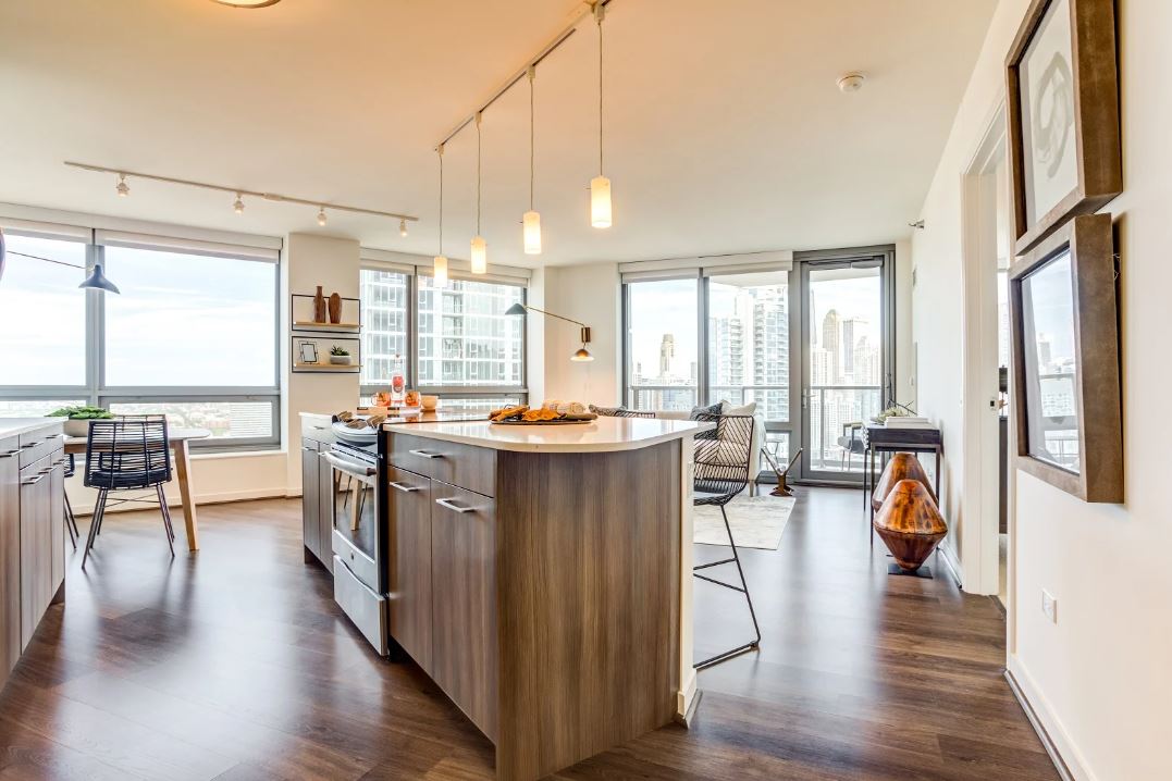 Explore luxury apartments in River North at Hubbard Place. Rent your next home in a unique, pet-friendly rental residence with an urban chic aesthetic, high-end finishes, and premier amenities. Select your new apartment from a variety of studio, one-, and two-bedroom floor plans. Enjoy all the features and finishes on your apartment must have list, including balconies that overlook Chicago, kitchens with stainless steel appliances and designer cabinetry, and oak flooring. Located near W Grand Avenue and W Kinzie St, you can commute to the hottest Chicago landmarks in minutes. Stroll and shop at Magnificent Mile or hit Merchandise Mart for interior design inspiration.