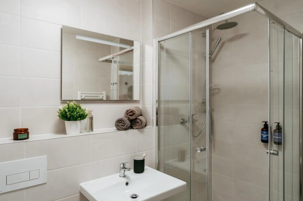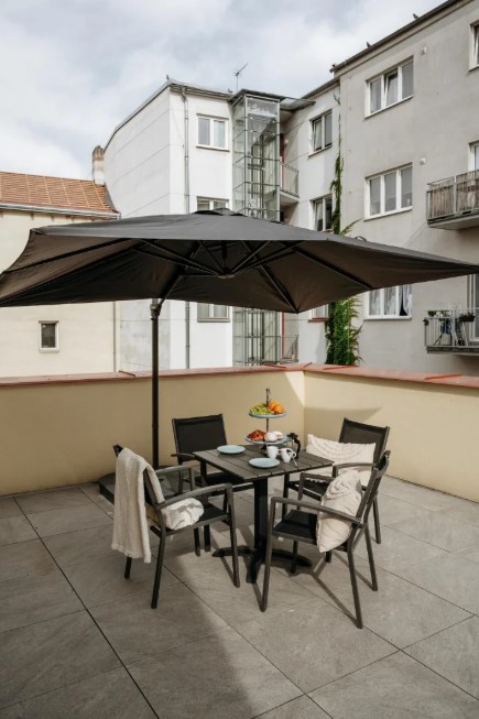 Located on the 4th floor with elevator access, this 48 sqm apartment is flooded with natural light. It has one bedroom, plenty of storage space, and a fully equipped kitchen. Enjoy the large terrace in the quiet courtyard for the perfect start to your morning or relaxation in the evening after exploring the city. Conveniently situated near multiple parks Large terrace with seating and garage for maximum comfort Ample storage space BEDROOM The bedroom has storage space to organize your belongings and a comfortable king-size bed, en-suite bathroom, and access to the vast terrace. Large windows fill the room with natural light, while blackout curtains ensure a restful night's sleep. King-size bed Storage Access to balcony Access to bathroom LIVING ROOM The spacious living area has a plush sofa that converts into an extra bed and a 126cm TV with Netflix & Disney for endless entertainment. It flows seamlessly into the kitchen and dining area for easy cooking conversation. Plush sofa that converts to a sofa bed TV with Netflix & Disney KITCHEN The kitchen is fully equipped, ready to cater to your culinary adventures. Complimentary tea and coffee capsules are provided, ensuring a delightful morning start. Kitchen equipped with induction hob, conventional oven, microwave oven, Nespresso machine, fridge with ice maker, freezer, and all the basic kitchen equipment you need to feel at home Complimentary tea and specialty coffee capsules BATHROOM Enjoy the convenience of a bathroom and separate toilet to speed up the morning routine. Thoughtful amenities such as a washing machine and ironing board are included, making it easier to manage laundry and personal care during extended stays. Treat yourself to the well-lit mirror and walk in a shower with a rain effect 1.5 bathroom Hairdryer, washing machine, dryer, iron, and ironing board There is a shopping mall with a cinema nearby. You can visit one of the area's many great cafes, bars, and restaurants, such as the "Pilsner Urquell" brewery restaurant at "Anděl," the modern food court "Manifesto Smíchov" or the fresh and new "Gourmet Pauza" restaurant. For dessert and coffee, guests recommend "Café Savoy." For a perfect brunch “Kavárna co hledá jméno” Lovers of walking and architecture can enjoy a stroll along the "Vltava River" to "Lesser Town." You can also walk through the nearby Sacre Coeur park to the Petřín Lookout Tower, just a short walk from Prague Castle. Close to the city center Many cafes and restaurants nearby "Petřín Lookout Tower" - 45 minute walk ❋ The hidden treasures of this location are the publicly accessible cable car of the "NH Prague City" hotel. Public transport The district's advantage is its excellent accessibility to public transport—the main transport hub is Anděl station, from which you can quickly reach many important places in Prague. The closest tram stop is Bertramka, which will take you to Anděl in 5 minutes. If you want to explore other parts of the city, everything is just a short tram ride away. "Anděl" B-line metro station - 9 minute walk "Prague Castle" - 20 minutes by tram from Anděl