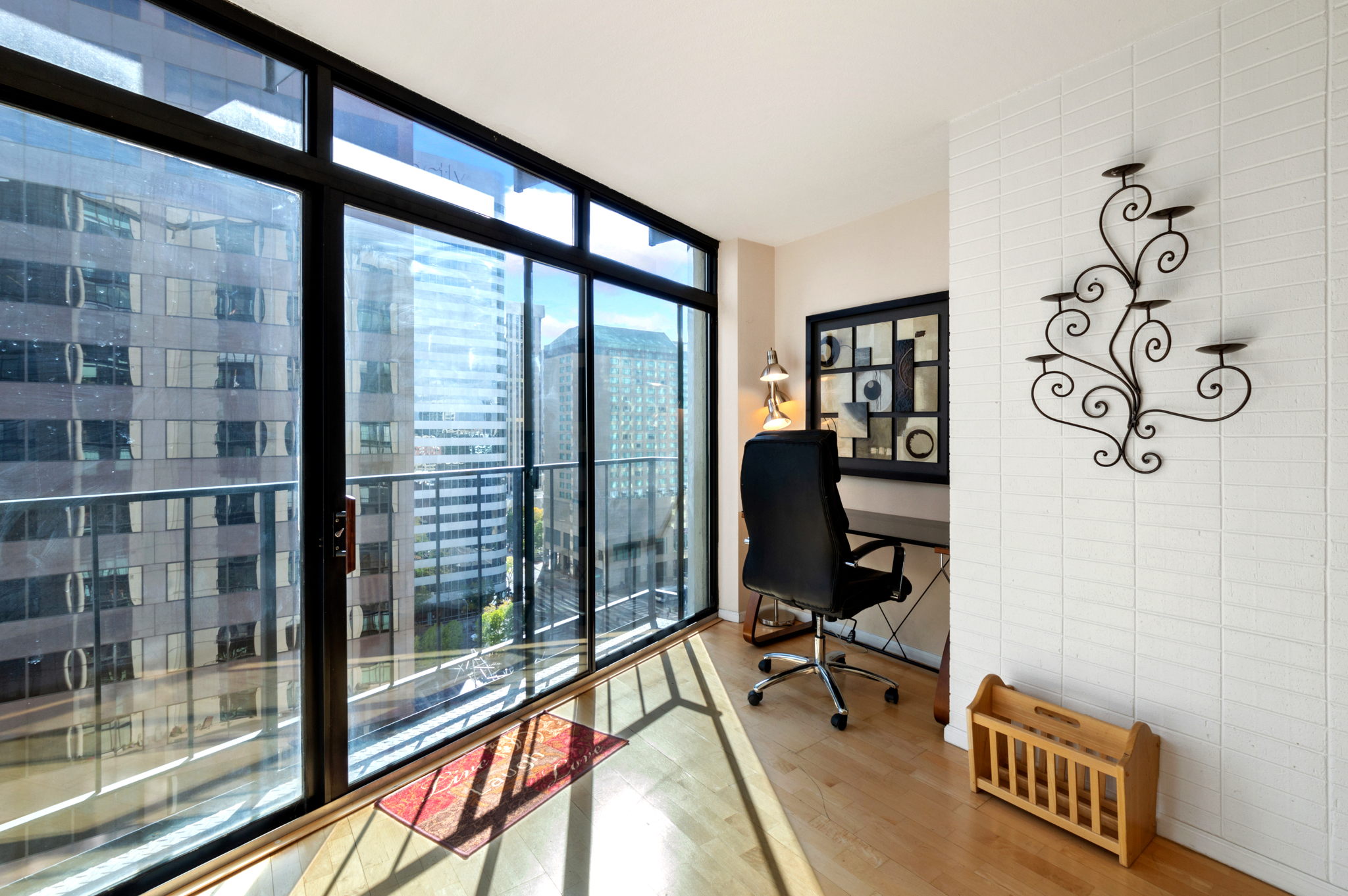 The property overlooks the heart of Denver. This property offers extensive amenities: 24-hour security, extensive fitness center, indoor pool, racquetball court, jacuzzi, tennis court, and outdoor running track.