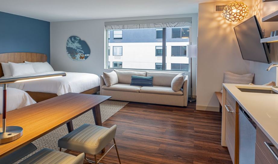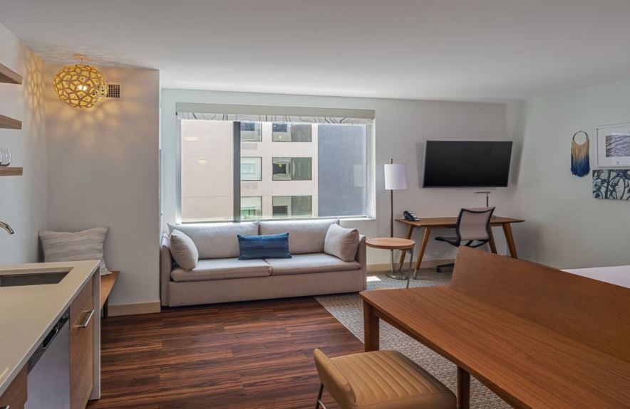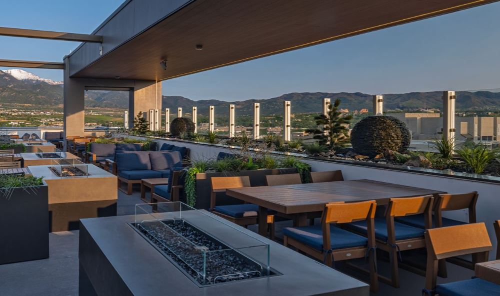Element Colorado Springs Downtown is a casual, comfortable and fulfilling way to experience downtown Colorado Springs. From family-friendly hotel amenities to flowing room layouts, we maximize your time and space to suit your needs. Our Studio Commons is a perfect example: multiple rooms centered around a common living and working space, allowing guests in the surrounding rooms to congregate, interact, work and dine together. Our dog-friendly, longer-stay Colorado Springs lodging focuses on eco-friendly amenities and sustainability. Wake up to free, signature Rise breakfasts and wind down at Lumen8 Rooftop Social on the 8th floor. Follow up with a custom workout in our state-of-the-art fitness center or relax in our indoor pool and whirlpool spa on the 2nd floor of our hotel in Downtown Colorado Springs. With 300 days of sunshine per year, Colorado Springs is a must for active travelers and adventure seekers.