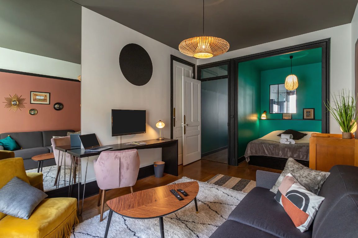 There's something effusively cool about this apartment in Villeurbanne, with a hint of art deco meets mid-century modern. Travelers won't be able to get enough of the details, from the extravagant lampshades to the vibrant walls, everything here feels like a work of art. Not only is it aesthetically beautiful, but it's also within easy reach of Lyon's center. Although this apartment looks artistic, it's still very livable and homely. And when everything looks this good, even the most simple daily acts feel special!