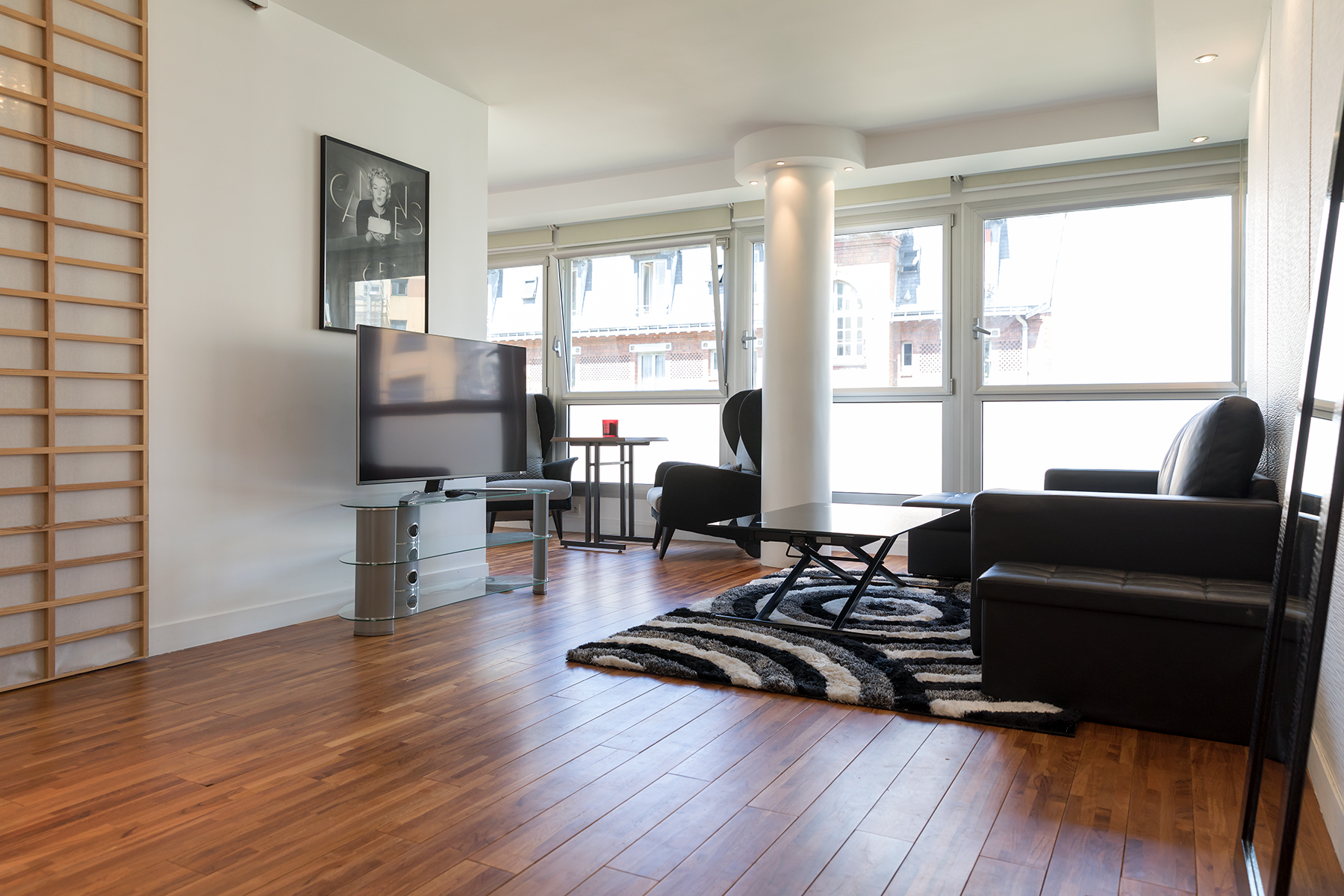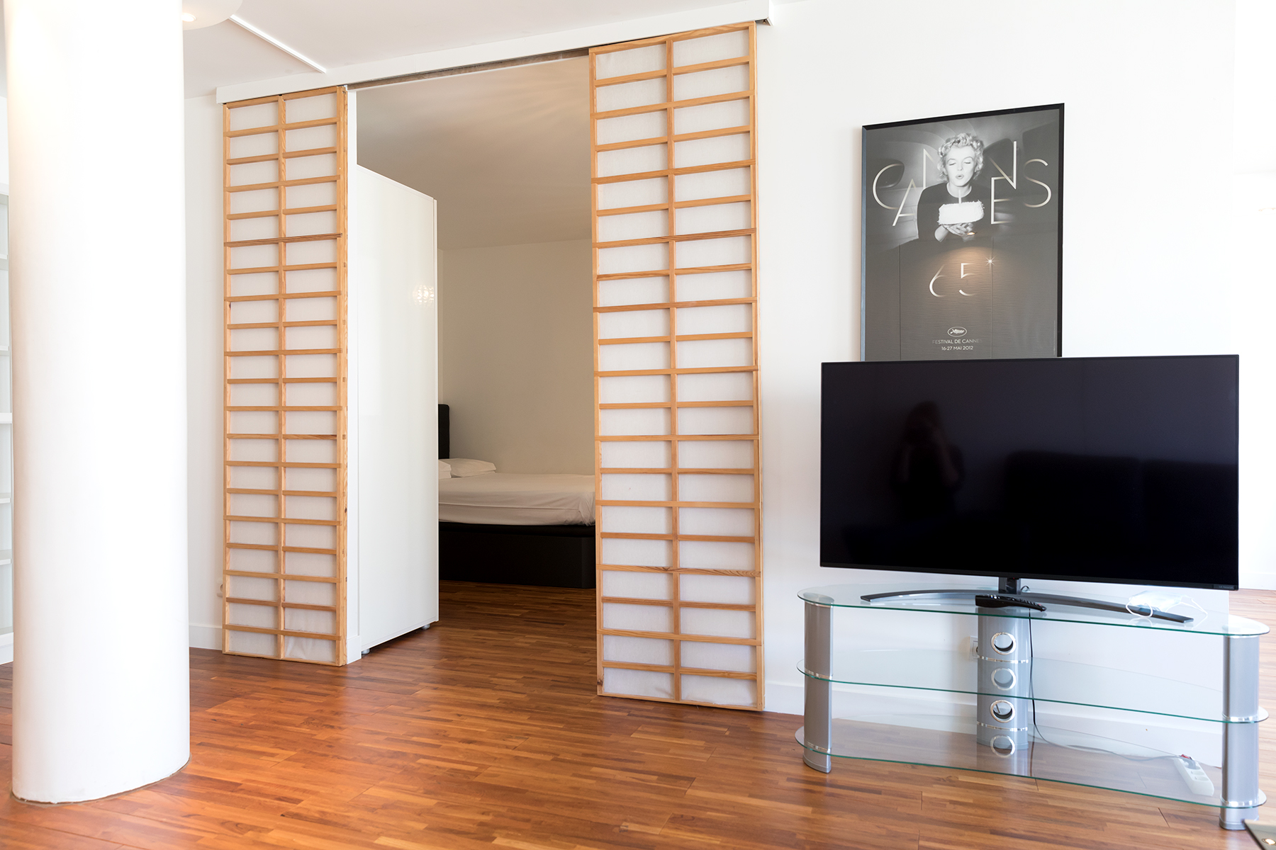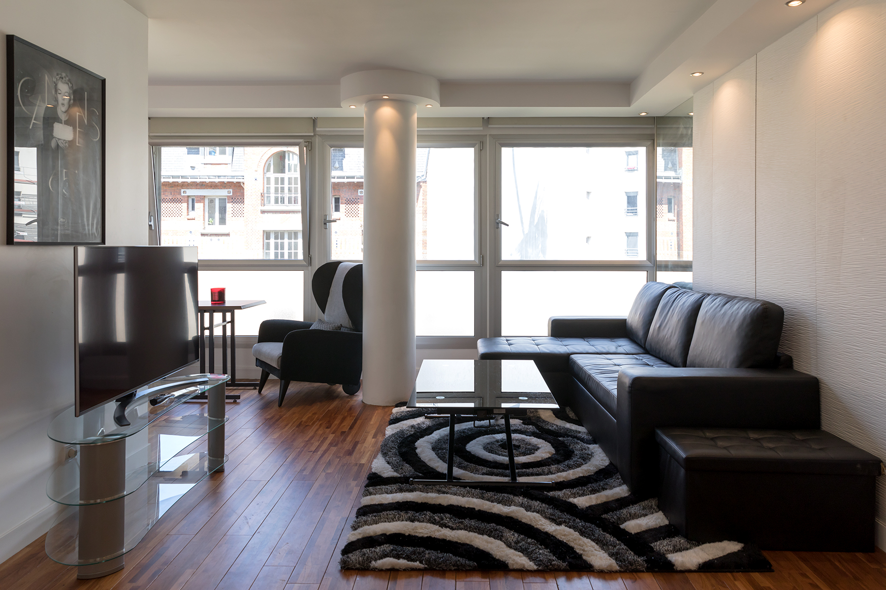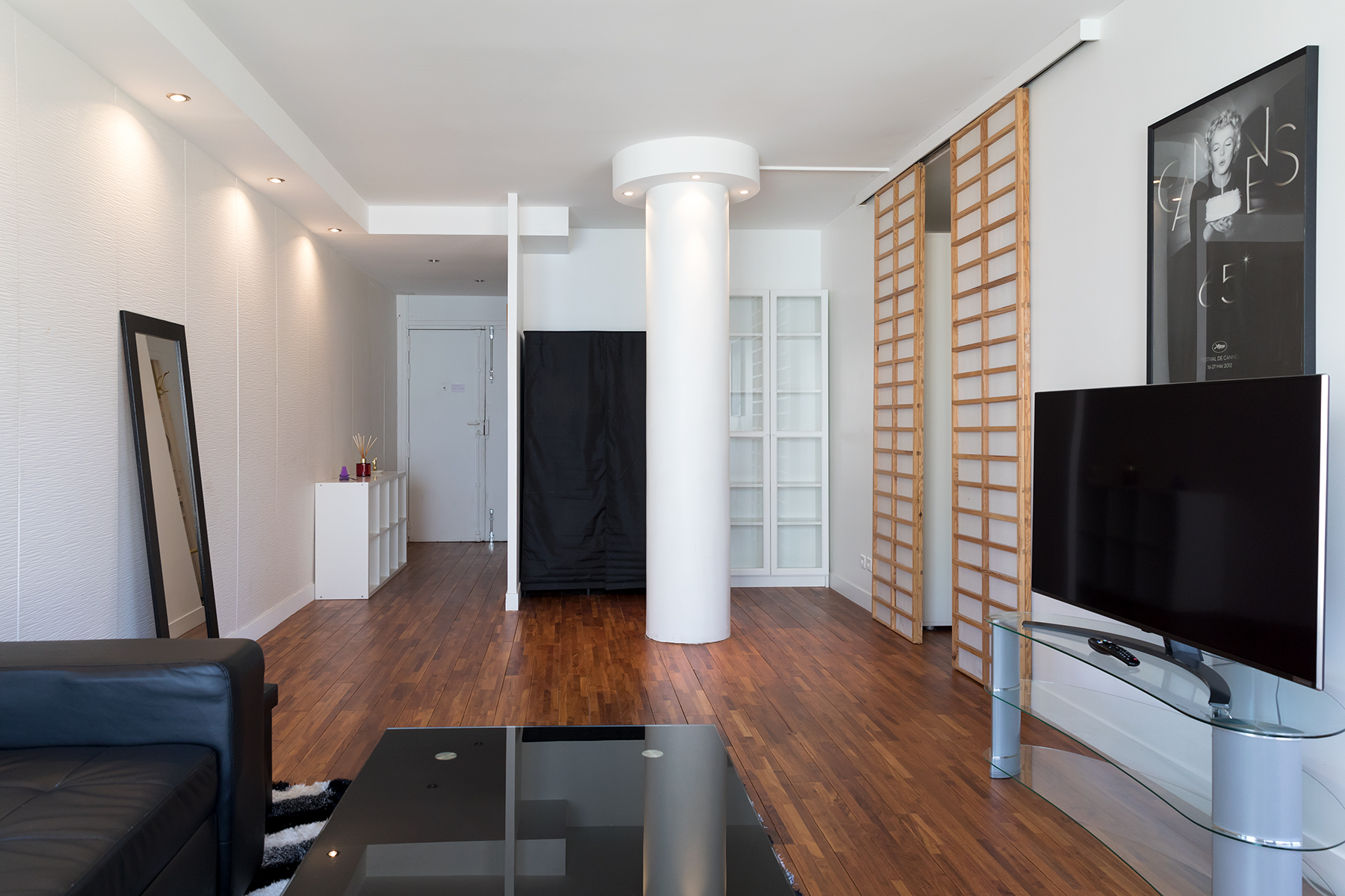 This apartment is located in the heart of the 15th arrondissement a two minute walk from the metro line 10 at Charles Michel. The apartment is located in a modern building complete with elevator and large hallways. Upon entering the apartment guests will be greeted by large bay windows bathing the kitchen and living area in lots of light. The living area has a comfortable sofa and flat screen TV. There is also a dining area for two as guests make their way to the open kitchen. The kitchen was newly renovated and has all the amenities including oven and dishwasher. There is a breakfast nook where you can sip your morning coffee while enjoying the view.
