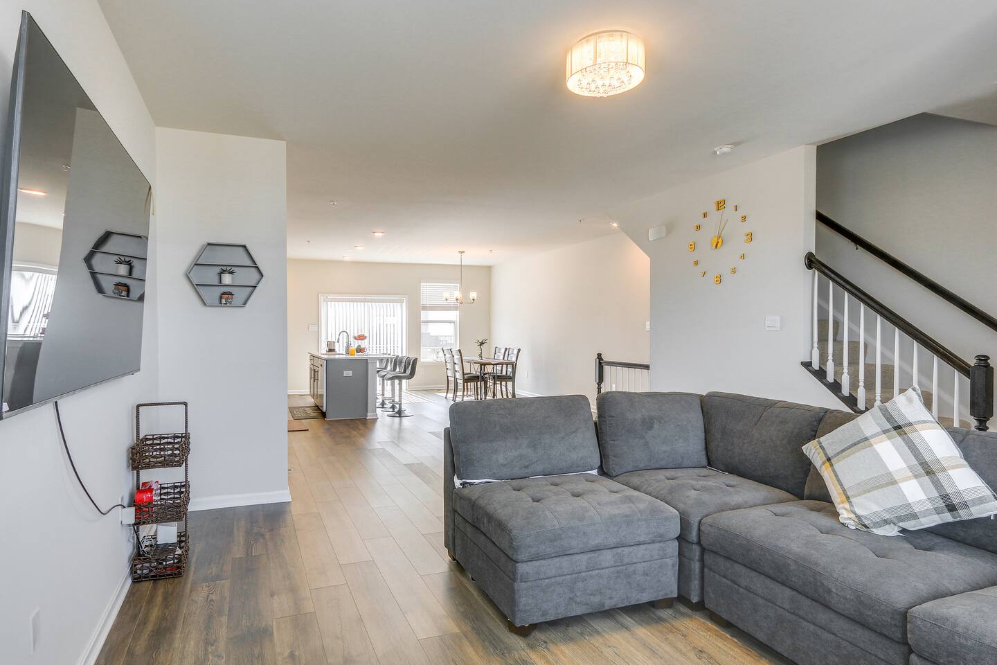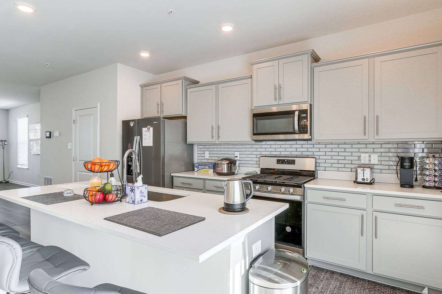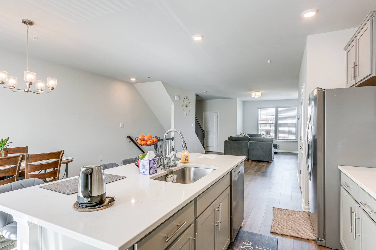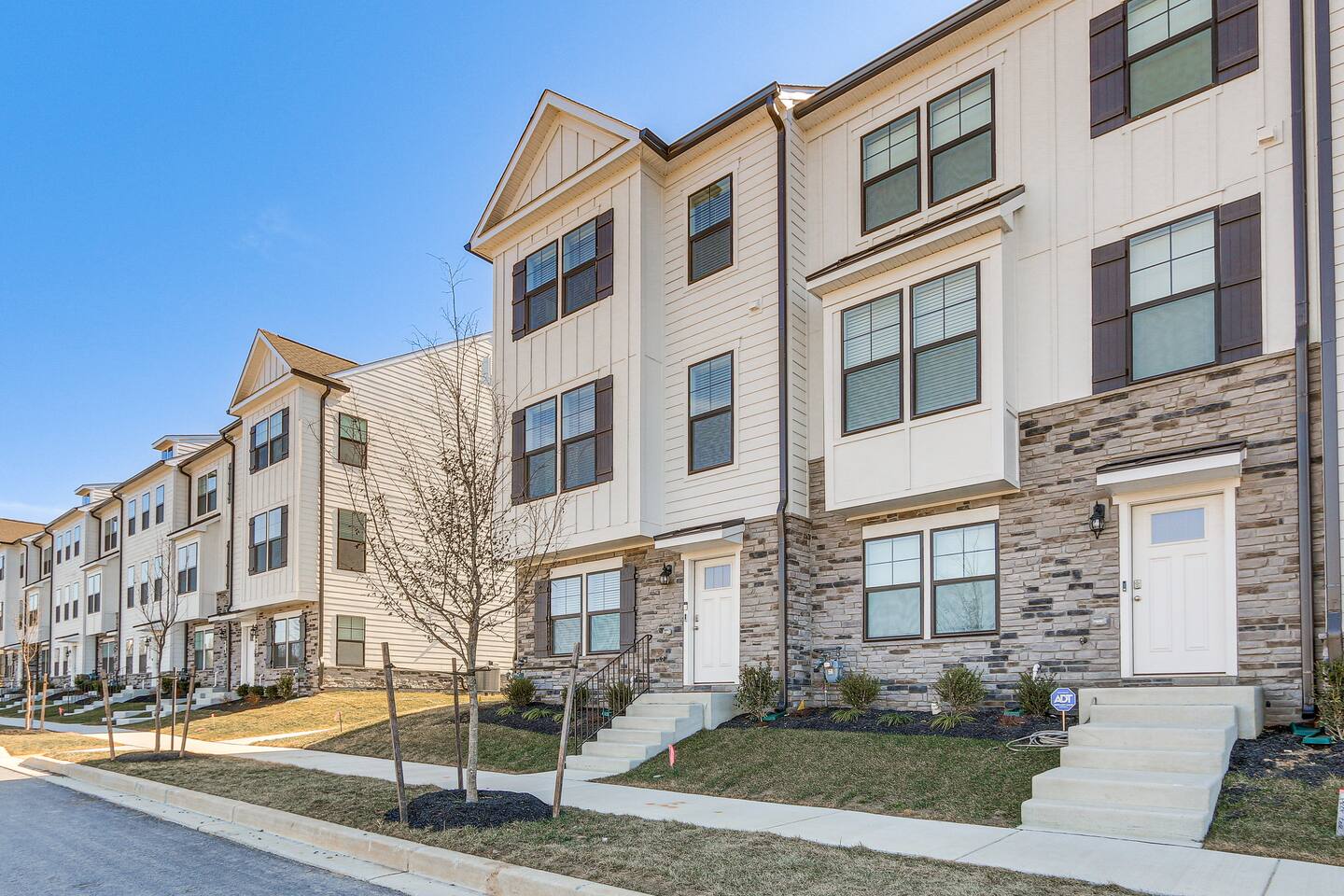 Located in Renn Quarter (Newly Developed Neighborhood) This newly built, 3-bedroom, 2.5-bath vacation rental townhome, nestled in historic Frederick, offers easy access to parks, shopping, and dining. Savor your mornings on the balcony with a warm brew or unwind in the evenings by breaking bread around the dining table. When you're ready to explore, enjoy a lively concert at Carroll Creek Park or admire dramatic views at Gambrill State Park.