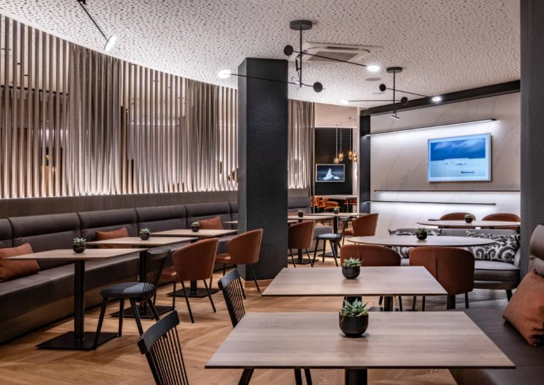 Standing at 159 meters our Hotel is the tallest hotel in Germany, located in the city center right across the street from the front entrance to the world´s second biggest fair and exhibition center. We are 15 minutes from the Airport, and 5 minutes from the main train station. Our 593 rooms has been updated in 2013 and are located between the 26th and 43rd floor. We have 25 flexible and modern meeting rooms, including the largest ballroom in the city. Our onsite technology team Venuetec will ensure a smooth event. Three international restaurants: Start the day at the Full American Breakfast Buffet at the Brasserie ici. At "Champions" you can meet for dinner and drinks in a relaxed, classy atmosphere after a long day.