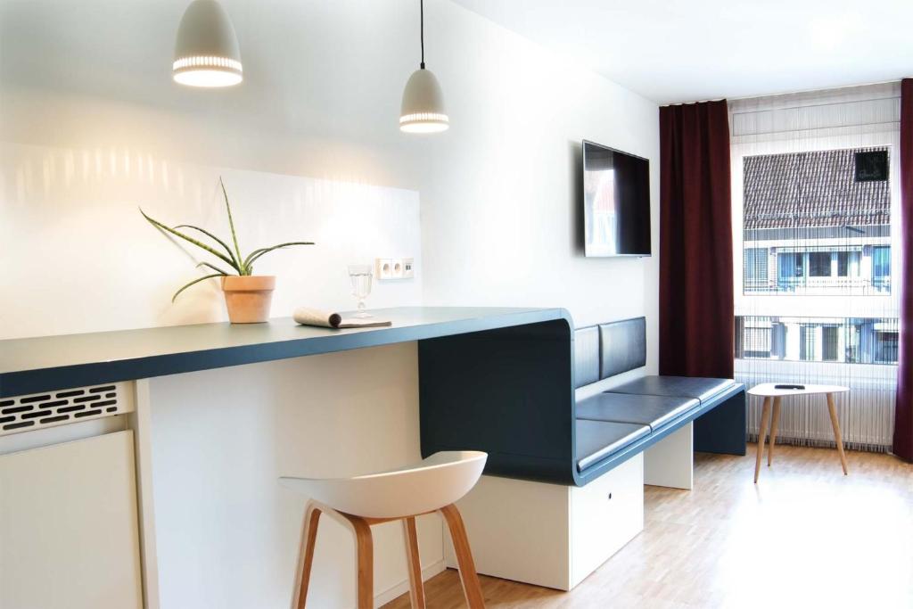 This apartment building at Karlstor is located in the middle of the city, directly at Karlstor, opposite the Federal Court of Justice. From your apartment you can reach Kaiserstrasse, the ECE shopping center, the Karlsruhe Baroque Palace and the cultural offerings of our city - the Baden State Theater, cinemas and much more - in just a few minutes on foot. There is a supermarket across the street. The Karlsruhe Palace Gardens and the Oberwald are ideal for local recreation. A tram stop is right outside the front door. In about 7 minutes you will reach the main train station. The premium apartments in Karlsruhe are modernly equipped and have flat screens, electric blinds, a fully equipped kitchen with dishwasher and, of course, free WiFi. Washing machines and dryers are also available for a small fee, so you can really live completely independently.