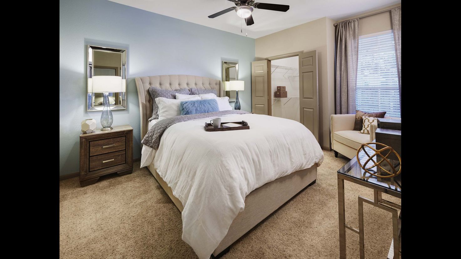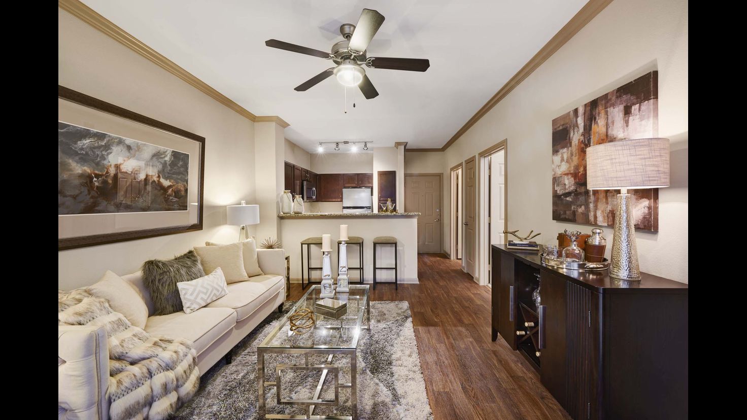Camden Midtown features one and two-bedroom apartments in the heart of the Midtown neighborhood in Houston, TX. We also have two bedrooms, two bathroom townhomes with attached garages and studies to make working from home more convenient! Each apartment features spacious kitchens with stainless steel appliances, wood-style flooring, and granite countertops, as well as full-size washers and dryers. Relax on your own private patio in the center of everything Houston has to offer. Enjoy conveniences like covered and direct access parking, and at-your-door trash pick-up and recycling. We are also a non-smoking community. Looking for a perfect spot for your home office? Check out our spacious apartments and townhomes that offer a study, perfect for working from home!