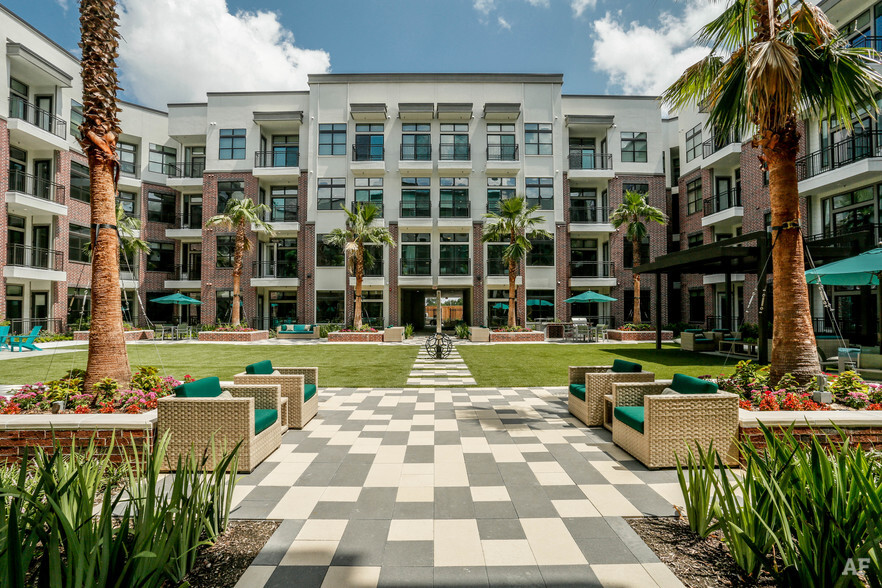 Expect the perfect blend of attention to detail and practicality when you check out the amenities at Tinsley on the Park Houston apartments. Take care of business with dry-cleaning services and a Wi-Fi business lounge with conferencing capabilities. Relax in our resort-style pool, landscaped courtyard, or scenic rooftop deck. And stay fit with our 10,000-square-foot, state-of-the-art gym as well.