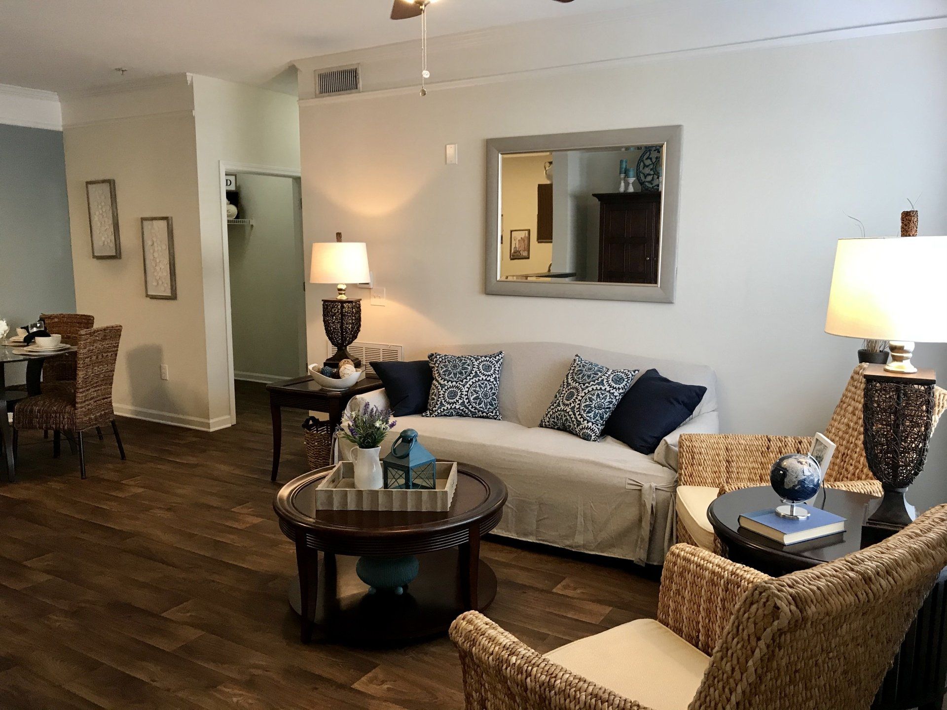Raise your expectations in luxury apartment living at PROSPER Gulfport. Live just two miles from the beaches of the Gulf of Mexico, near area military bases and close to area shopping, dining and entertainment options. PROSPER Gulfport offers an exceptional array of community features. Ours is a controlled-access apartment community with a saltwater pool and outdoor lounge. Residents enjoy our clubhouse, fitness center, playground and pet play area. We have 24 hour, on-site courtesy officers. Enjoy the convenience of walk-in closets and the beauty of ceramic tiled kitchens. Relax on screened-in porches and patios.