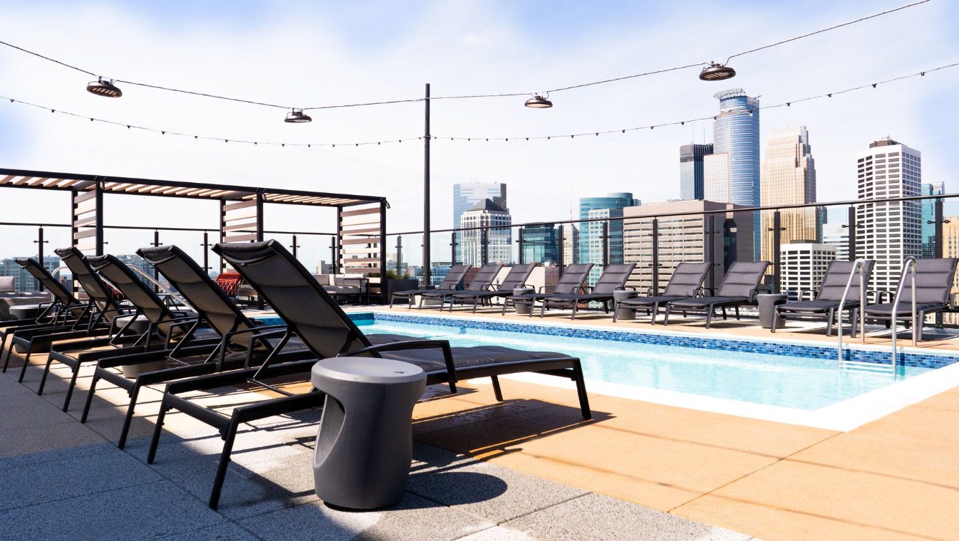 If you’re ready for elevated city living, 4th & Park in Downtown East, Minneapolis delivers a sleek and modern experience right in the heart of it all. This brand-new high-rise blends sophisticated design with unbeatable access steps from The Commons park, U.S. Bank Stadium, and the city’s skyway system. Inside, apartments showcase upscale finishes like quartz countertops, stainless steel appliances, wood-style flooring, and exposed concrete accents, all framed by floor-to-ceiling windows with stunning skyline views. Amenities take things to another level: a rooftop deck with a resort-style pool, fire pits, and grilling stations; a lush sixth-floor garden terrace; a high-end fitness center; co-working and lounge spaces; and secure bike storage with repair stations.