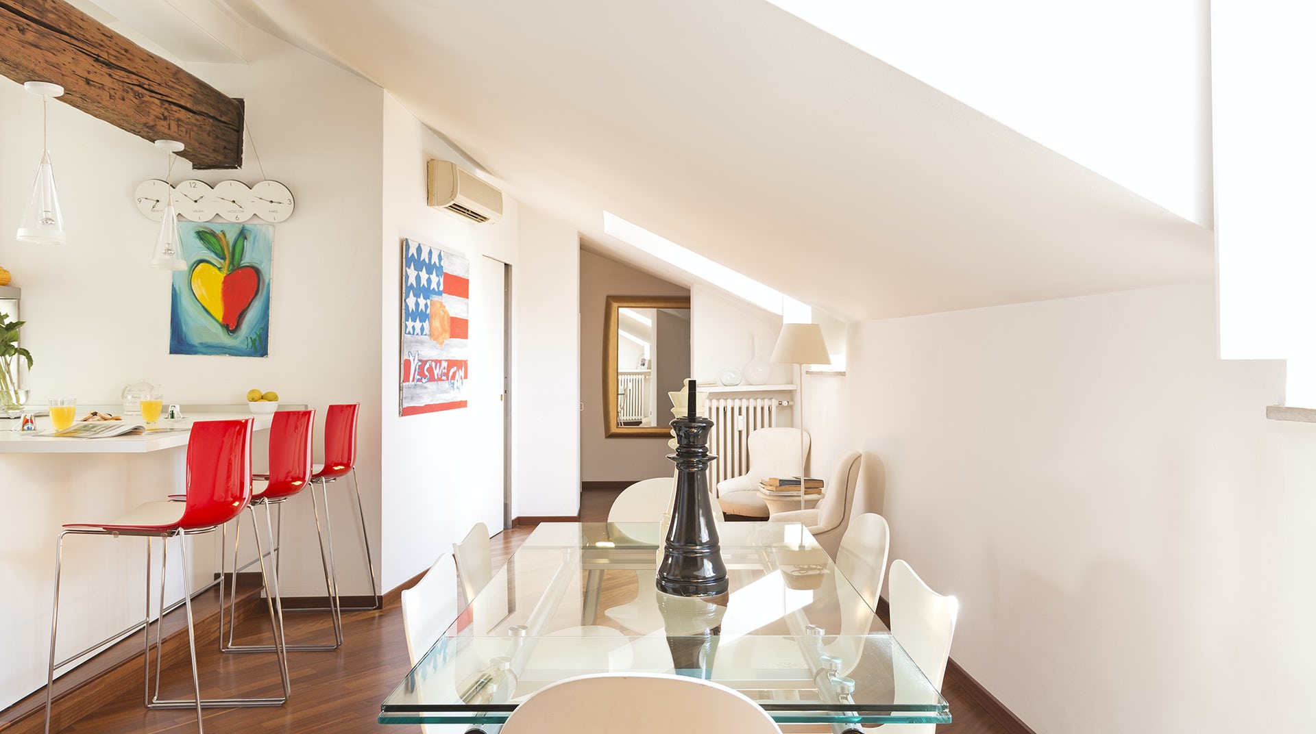 Looking to stay right in the heart of Milan? We’ve found you just the right spot in town. Overlooking the beautiful church of San Giorgio al Palazzo and less than five-minutes away from the Duomo, lies this light-filled penthouse. Spread out across the top floor of an elegant building, the home is made for a family or a group of friends set on exploring the city. We particularly loved the living spaces which make for easy socializing. The original marble fireplace and custom-made bookcases create the perfect setting to come together for a few pre-evening drinks. And surprisingly, for somewhere this central we found the apartment very quiet. It really is the perfect retreat within the hustle and bustle of Milan. Missori is a beautiful neighborhood in the heart of the historical center, just South of the Duomo. A lot of businesses are located here, but this is no ordinary corporate area - think gorgeous, historic buildings and super chic workers. Missori is extremely well-located for either a tourist or business trip - it's just a short walk to the picturesque streets of Cinque Vie as well as the Duomo. Lots of good restaurants within easy reach too. One thing to know – this area’s quite central, and given Milan’s a busy city, this means that there’s always a fair amount of noise coming from the street, whether it be passing trams, roadworks, or something else. And as the city expands, there are going to be more and more infrastructure projects further out from the center.