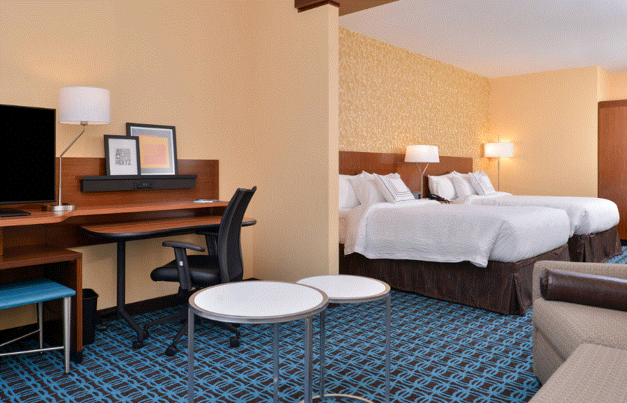 Awake refreshed at Fairfield Inn & Suites Warrensburg. Our modern hotel surrounds you with dynamic destinations including the University of Central Missouri and Western Missouri Medical Center. Easily access UCM Athletics facilities such as James R. Crane Stadium. After your adventures, make yourself at home in our stylish rooms and suites. We provide complimentary Wi-Fi, plush bedding and flat-panel TVs for your utmost relaxation and convenience. Kick-start your mornings at our free breakfast buffet. Stop by The Corner Market to satisfy your snack and beverage cravings any time of day or night. During downtime, work up a sweat in our fitness center or enjoy an invigorating swim in our indoor pool. Need to host an event? We feature a small event space, perfect for hosting board meetings and social gatherings.