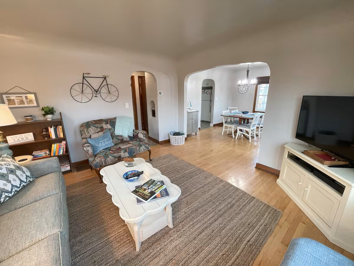 Lovely cottage-style home. You will be close to everything when you stay at this centrally located house. Walk to the beach in five minutes. Shopping, cafes, restaurants, entertainment, and arts are less than a mile away. Recreation options abound with the Ahnapee trail and lakeshore close by. Door County is a short 20-minute drive and Green Bay is 30 minutes. Big yard with a fire pit, and a cozy front porch for morning coffee. Smart TV and lots of books and games for rainy day options.