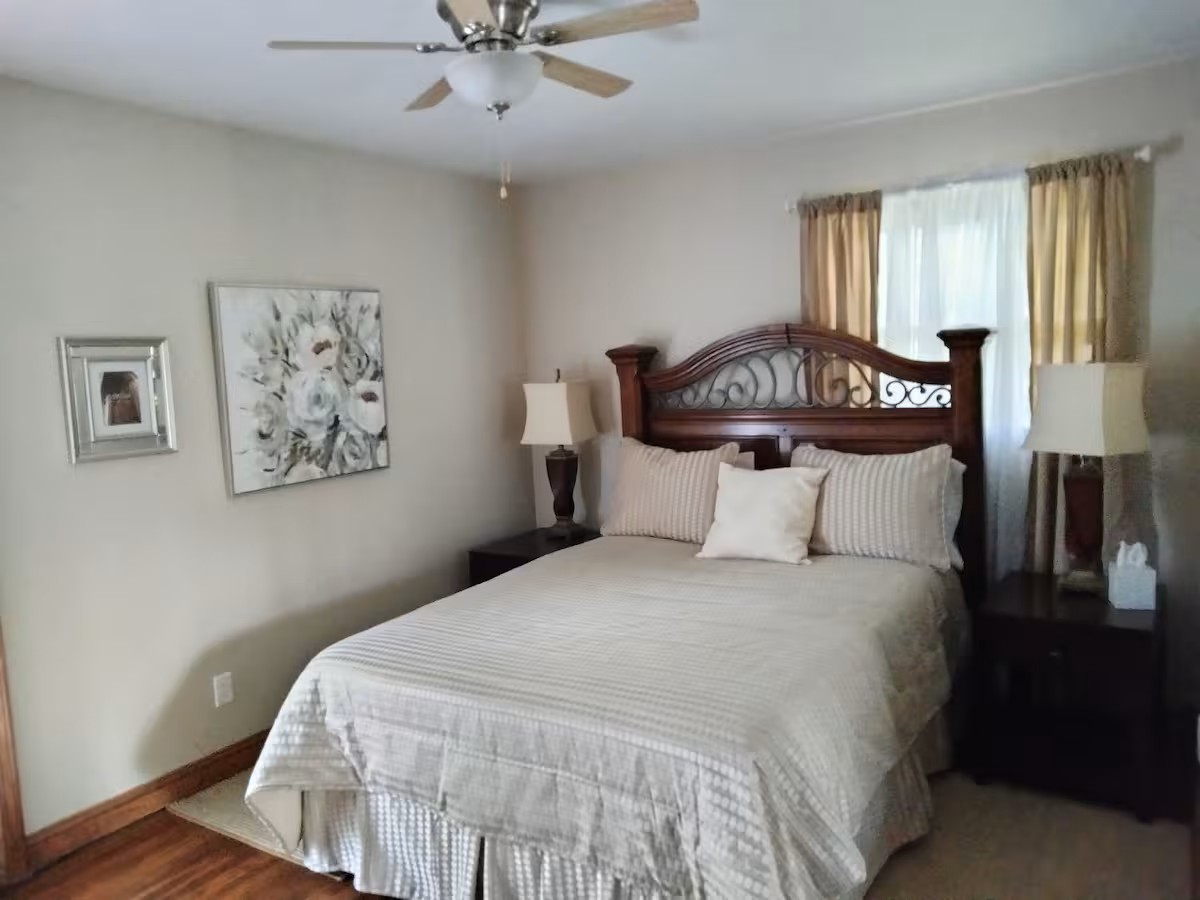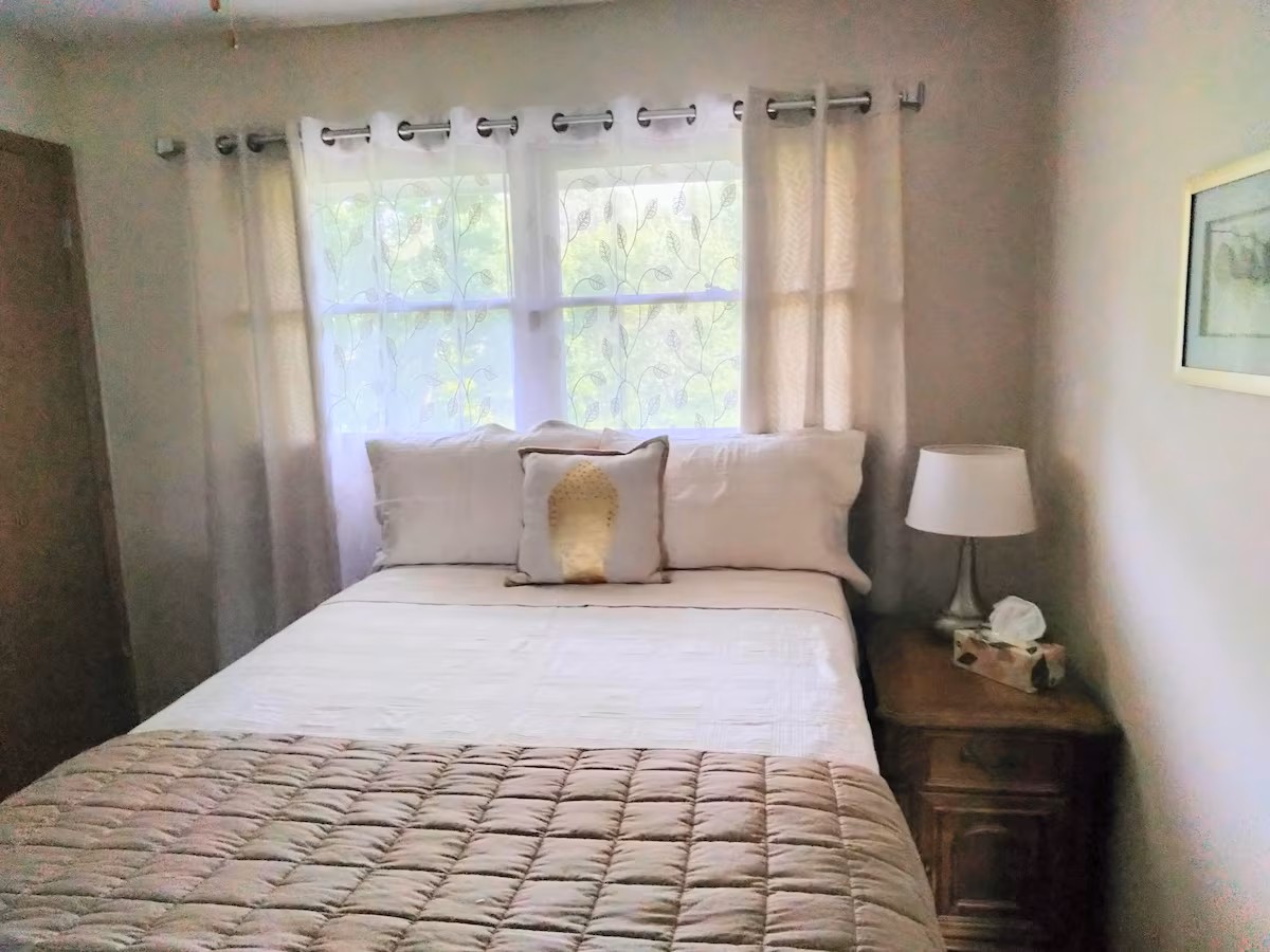 Take it easy at this unique and tranquil getaway. Located in a wooded cul-de-sac, privacy and nature abound. The home is also situated on a deer path. Watch families of deer migrate to the east in the morning and return West in the early evening. Blue Heron fish in the backyard creek. The creek is also used for kayaking to Lake George in Hobart. Try your hand at fishing. Blue gill, crappy and carp have been caught from those waters.