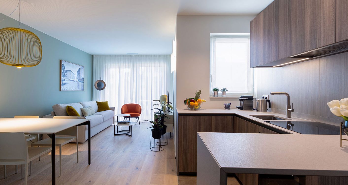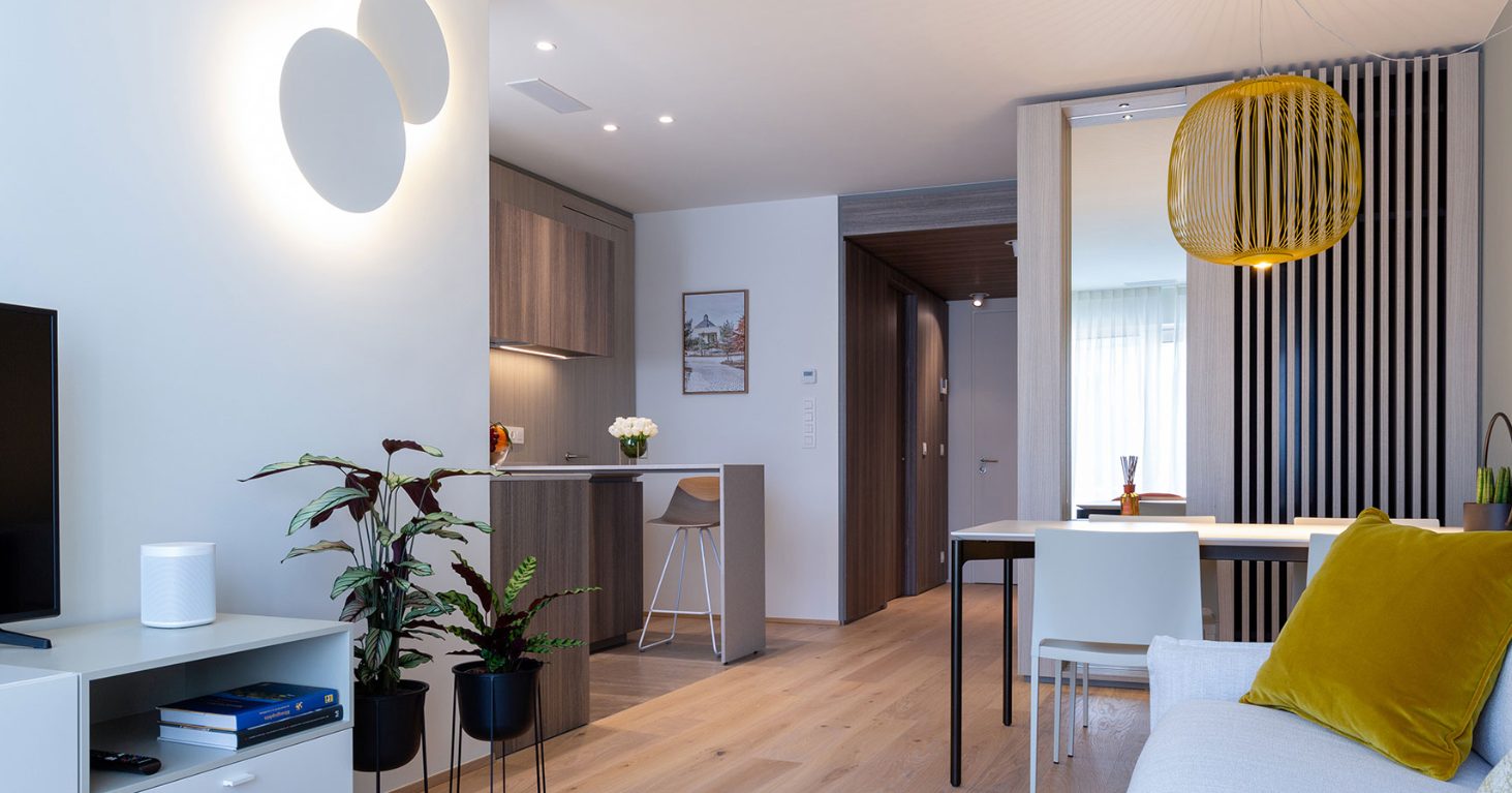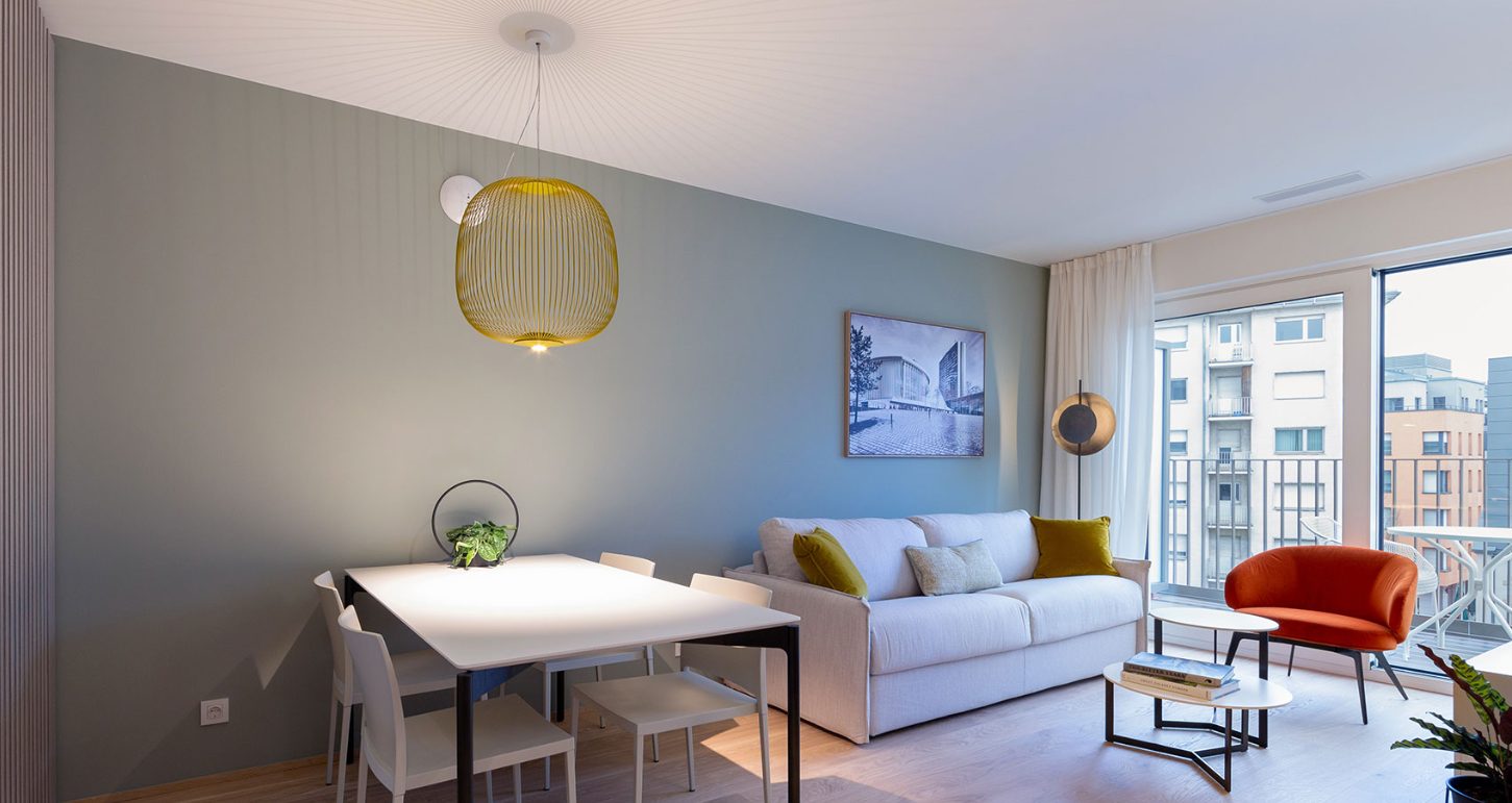 Located between “la Ville Haute” (the Historic City Centre) and “la Gare de Luxembourg” (the railway station serving as primary transportation hub of the city) The Central offers accommodation in 28 apartments with a unique mix of tailored guest services and cutting-edge technology. Compact full-optional apartment with terrace. The kitchen is equipped with induction stove, oven, microwave, fridge & freezer, dishwasher, kettle and coffee maker in addition to high quality kitchenware. In the living room there is double pull-out bed with thick real mattress and a table for 4 people. Floor heating, walk-in shower and brushed steel taps in the bathroom. This residence suite is soundproofed by acoustic doors and large triple-glazed windows, guaranteeing privacy and exclusivity. In the basement laundry facilities are available. It has everything you need for a comfortable and productive stay in Luxembourg.