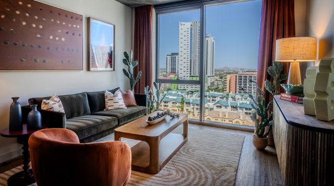 Sol Modern is a contemporary apartment community situated in Phoenix's vibrant Roosevelt Row district. It offers luxury living spaces complemented by modern co-working areas and diverse dining options. Residents can enjoy a variety of amenities designed to enhance their lifestyle.
