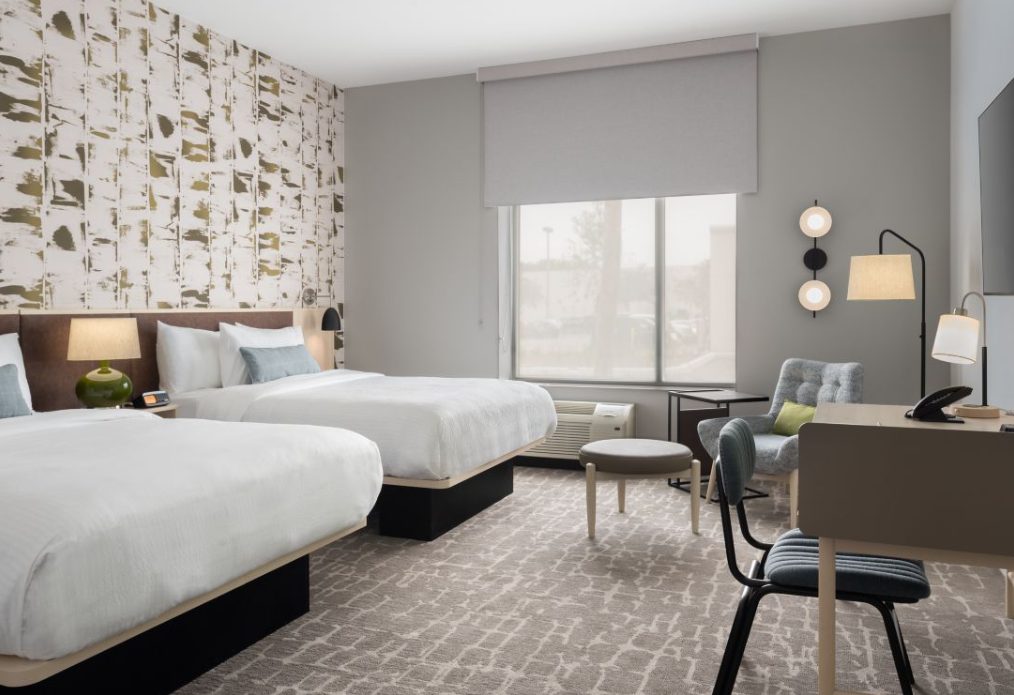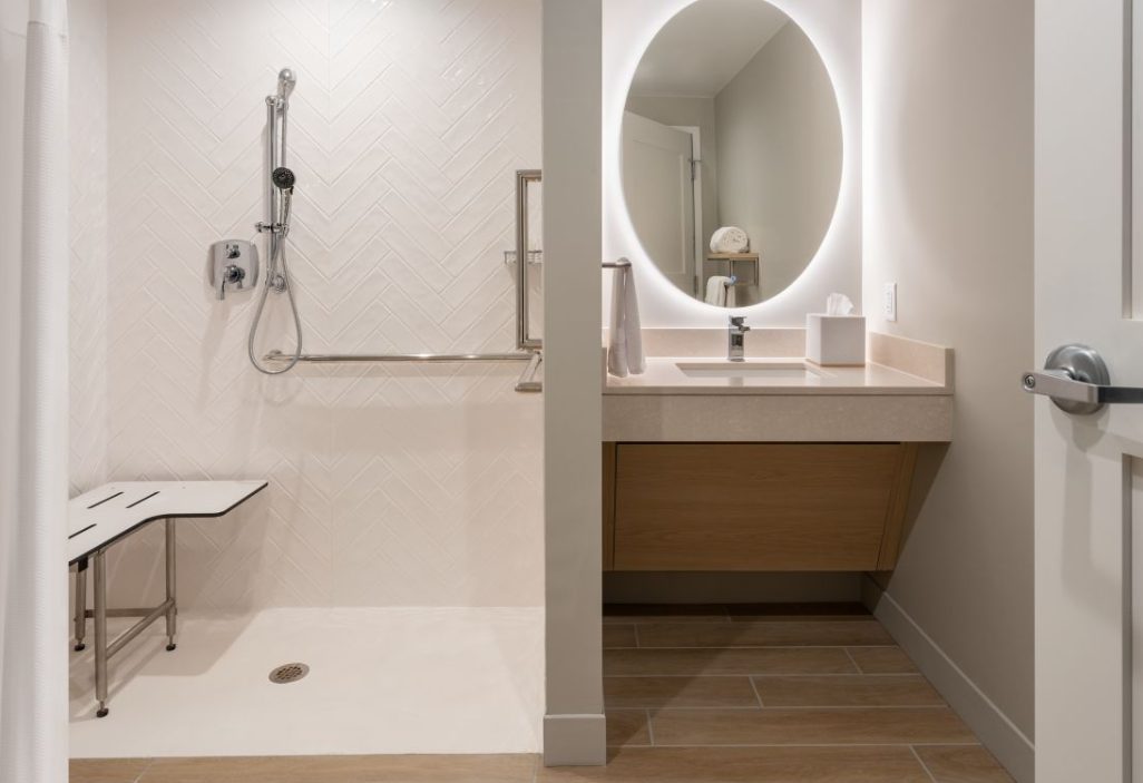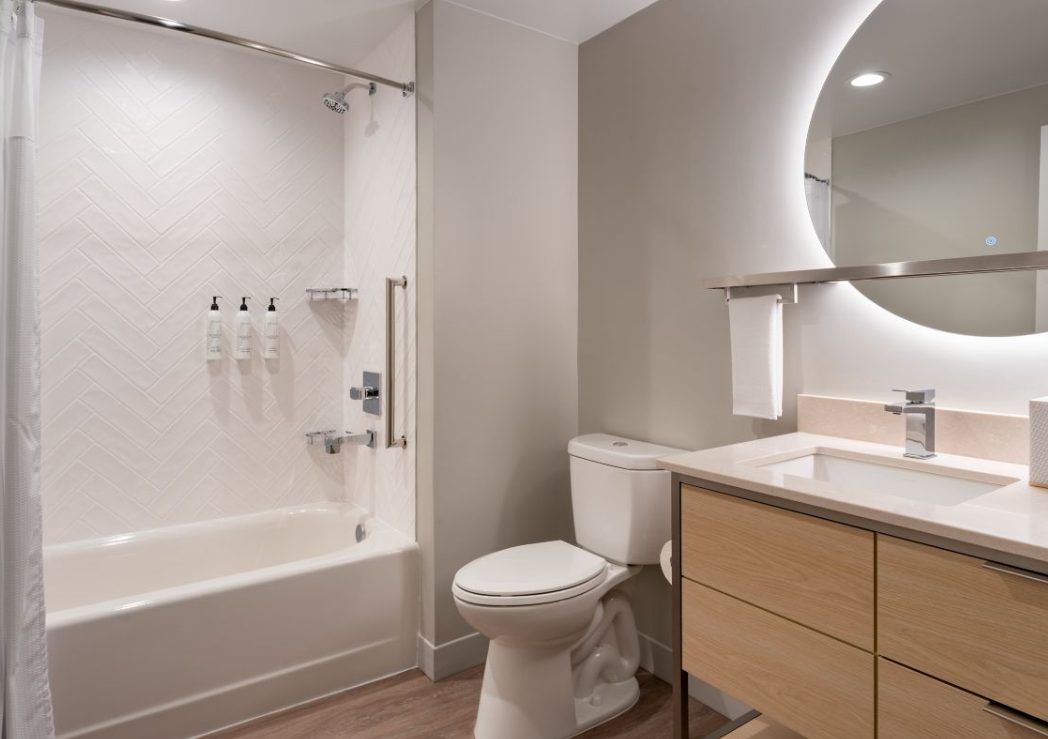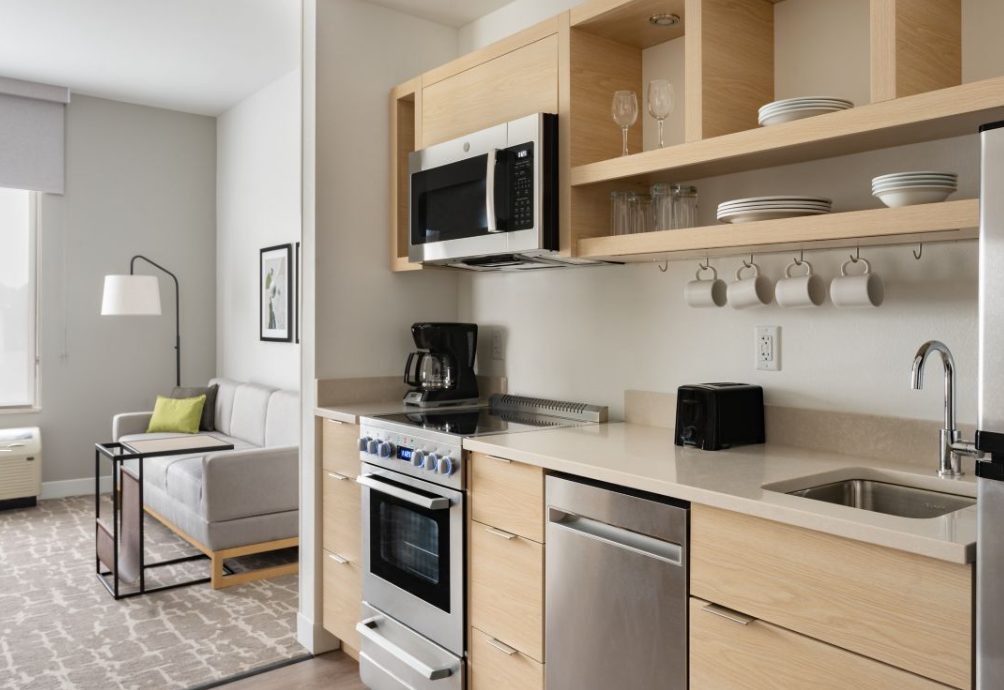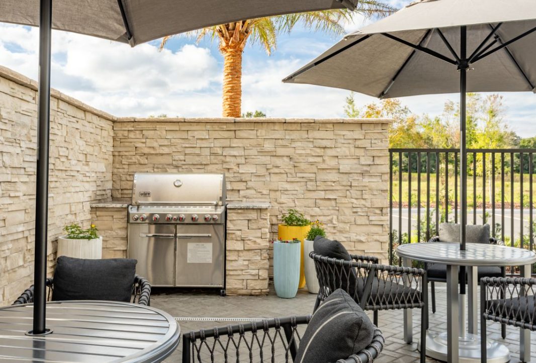 The TownePlace Suites Ocala is perfect location as we are minutes from World Equestrian Center (W.E.C), Florida Aquatic Swimming and Training Facility (F.A.S.T), and things to do in Ocala. Relax and unwind from your day and enjoy the Florida sun in our zero-entry outdoor saltwater pool. Upon entering the lobby, guests will be greeted with an inviting aesthetic of a warm color palette featuring soft neutrals and deeper tones, contrasting with pops of steel blue and muted turquoise. Elevated details like the built-ins and ceiling design parallel a residential design giving the hotel its home-away-from-home vibe. Our pet-friendly hotel offers spacious studio, one-bedroom suites with separate living and sleeping areas, comfy beds, and full kitchens. The addition the hotel offers complimentary Wi-Fi and Parking, SmartTV package with Netflix and Pandora Streaming capabilities, a complimentary full hot breakfast, and adjustable workspaces that are great for extended hotel stays in Ocala, Florida.