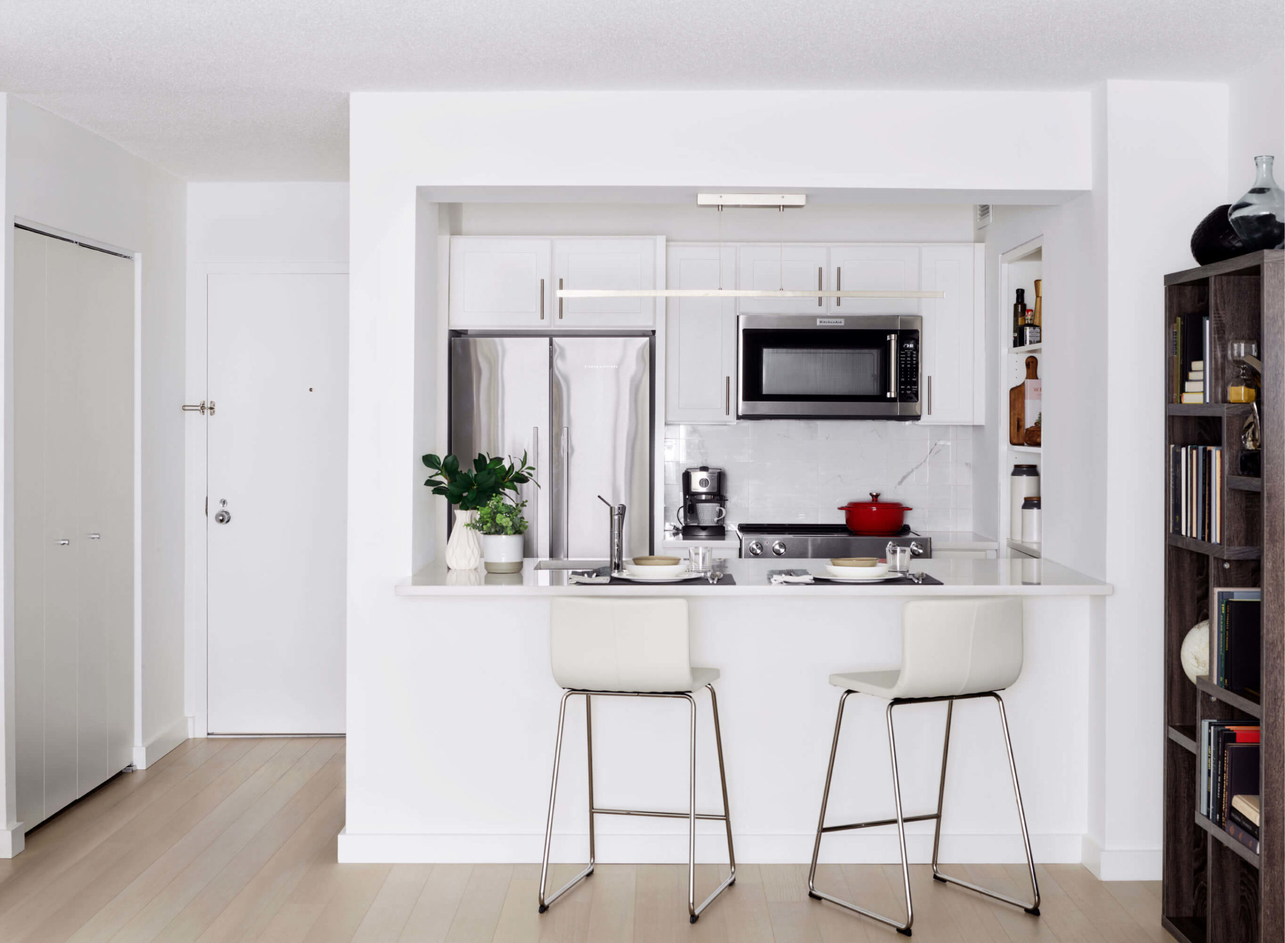 Located at the confluence of Boston’s financial, entertainment, and historic districts, Devonshire is an easy walk to Faneuil Hall, Government Center, the theater district, and most downtown offices. The Green, Red, Blue, and Orange T lines are within a short walk, and Logan International Airport is less than 15 minutes away. Fully-equipped apartments feature large kitchens, open-concept layouts, and comprehensive linen packages.