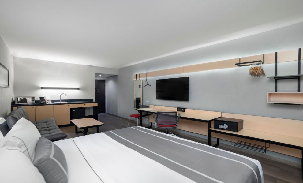 City Express Plus Insurgentes Sur is a hotel in Mexico City where you'll find modern spaces that combine design and technology with personalized service. During your stay, choose from five types of rooms: King, Double, Suites and Two- or three-bedroom suites. For a business trip, this hotel offers Wi-Fi and a meeting room to meet your work needs. We also offer housekeeping, room service and complimentary Continental breakfast, as well as a gym. Our convenient location in Mexico City provides easy access to the Olympic Stadium, major theaters, shopping malls and renowned restaurants. Feel free to leave your car in our parking lot for an additional fee. Or request our complimentary transportation service within a 5-kilometer radius.