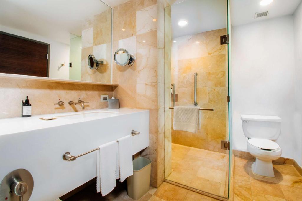 Our hotel, connected to Hilton Garden Inn Mexico City Santa Fe, is in the Corporate District, one minute from Expo Santa Fe. Multinational corporations such as Chrysler and Microsoft are within a four-minute drive. Santa Fe City Mall and Parque la Mexicana are two kilometers away. Enjoy our heated pool, fitness center, and restaurant.