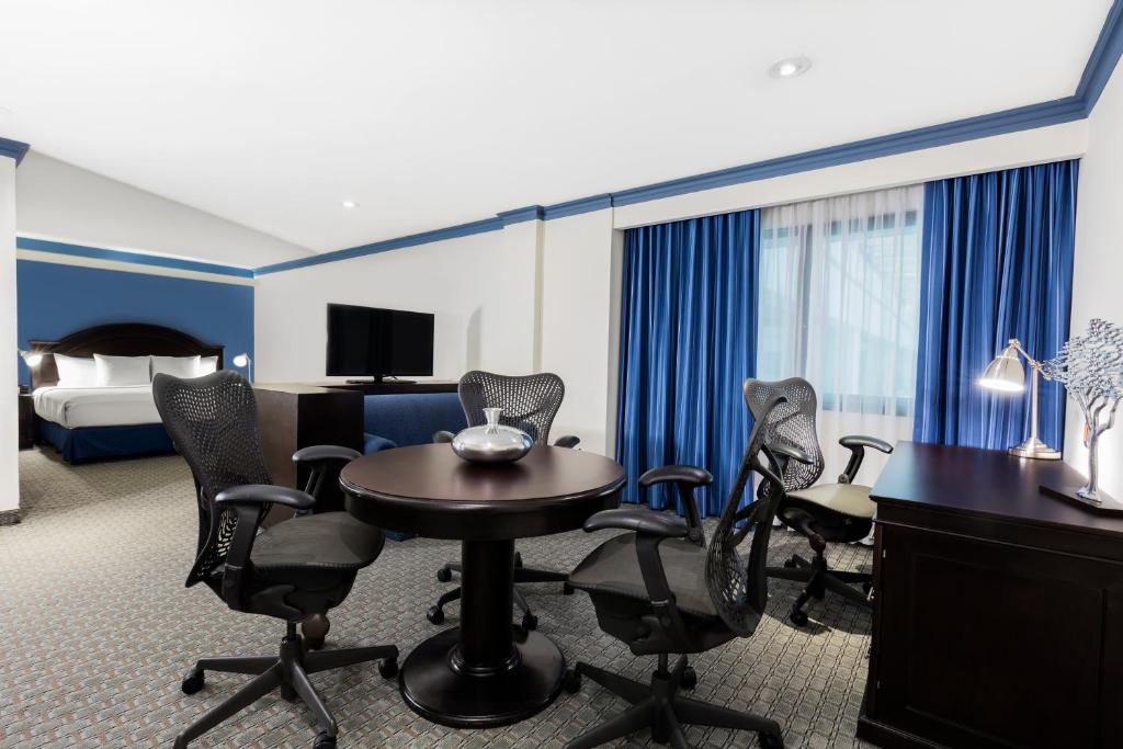 Hilton México City Airport offers direct access to Mexico City International Airport’s Terminal 1 and free transportation to and from Terminal 2. We're also six kilometers from Foro Sol and Palacio de las Deportes for live concerts and events. Boasting views over the runway, our bar is open 24 hours, and the restaurant starts serving breakfast at 5:30 am for early flights.