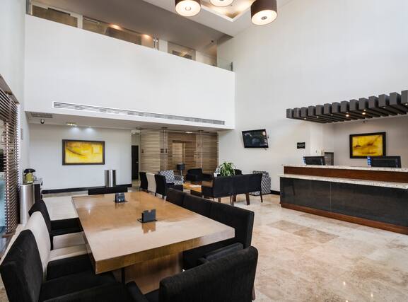 Find us one block from Corregidora Stadium. The Querétaro Congress Center and historic Santiago de Querétaro are 10 minutes away, and we’re 50 minutes from the Peña de Bernal monolith. We have an indoor pool and a free shuttle to and from Querétaro Airport and the bus station. Every stay begins with a warm DoubleTree cookie.