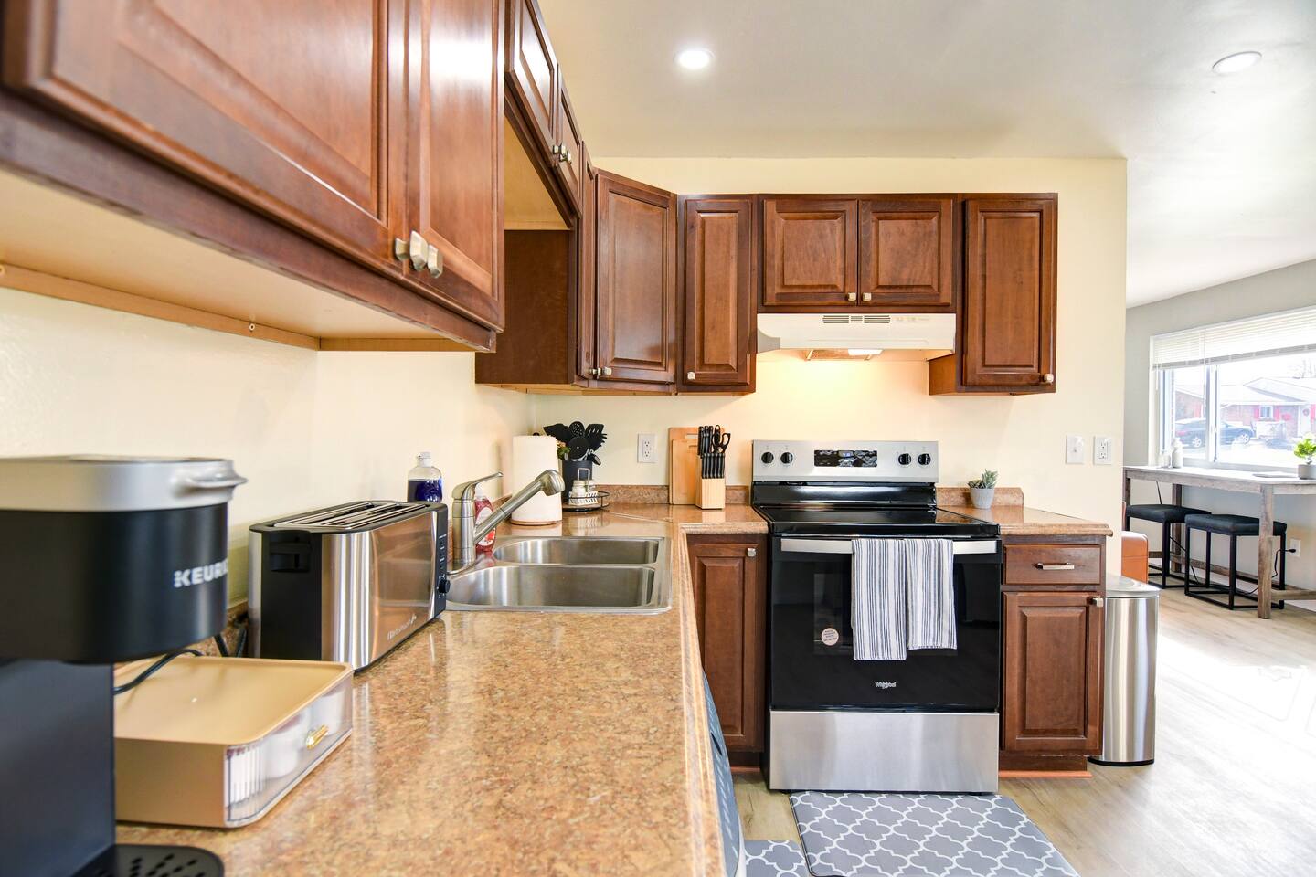 Looking for a comfortable, well-equipped home for an extended stay? Our 3-bedroom, 2-bathroom house in Kettering is the perfect choice for business professionals, work crews, and families in transition. Enjoy a welcoming environment with all the amenities you need for a productive and relaxing stay. Located in the heart of Kettering, you’re just a minute away from Delco Park, ideal for outdoor walks or a break in nature. With Kettering Health just 10 minutes away, and The Greene's shops, dining, and entertainment only 8 minutes from your door, you’ll have everything you need right around the corner. Plus, Wright-Patterson Air Force Base is only 15 minutes away—perfect for contractors or military families. Whether you’re staying for business, a family getaway, or a longer stay, this home offers the perfect blend of comfort, convenience, and style.