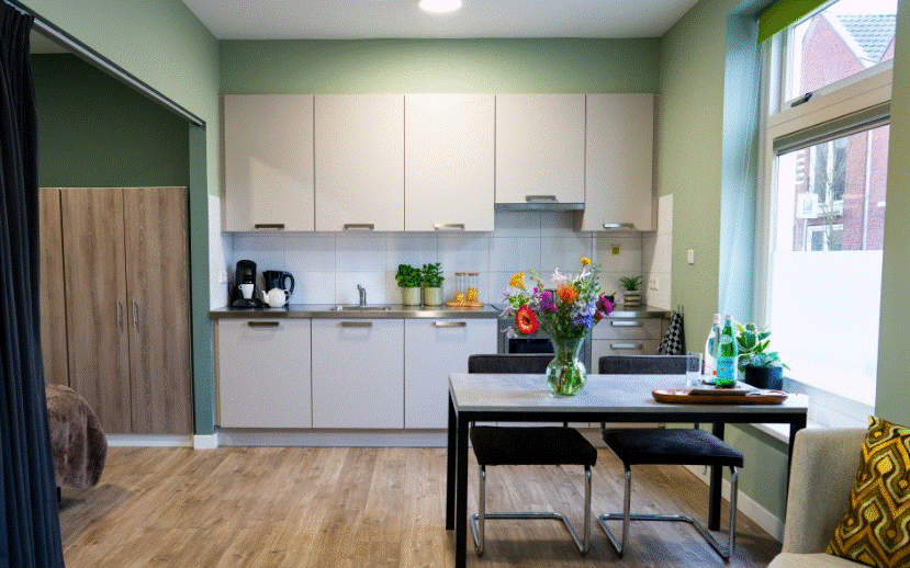 The City Studio Deluxe is a modern furnished studio suitable for 1 or 2 persons and is located in the center in the former Post Office of Wageningen. It has a private bathroom, fully equipped kitchen and a sitting area with sofa.