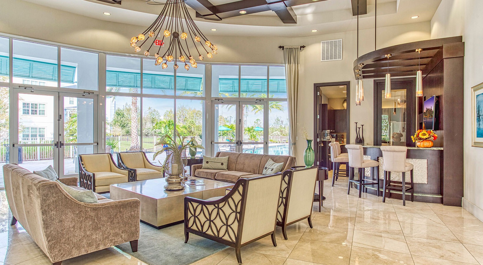 Emerson Apartment Enclave at Celebration unveils an exceptional portrait of living. A unique fusion of style and sophistication, our apartment residences reflect your contemporary flair. Enjoy the life you deserve. When you live at Emerson Apartment Enclave at Celebration, your address says it all. Timeless architectural style and neighborhood charm are the settings for a sought-after, 100% smoke-free luxury apartment enclave inside the village of Celebration. The generous one, two and three-bedroom appointed apartment residences and carriage homes spare no detail in catering to the main character of this lifestyle.Whether it’s one of our luxury apartments and carriage homes or any of the community areas, you’ll discover luxury at its finest – luxury that’s without compromise. Our brand new apartment community affords residents the opportunity to enjoy clean, modern, and strategically-designed spaces that are strikingly contemporary, yet retain that classic sense of home that we all long for. Enjoy a lazy evening on your porch. Cook in luxury in your own chef’s kitchen – or head outside and throw some burgers on one of our chef-inspired outdoor grills. Sweat away the stress of a long day in our fully-equipped fitness studio. Invite friends over to relax by the resort-style pool. Better yet, scoop up your dog and let him play with his friends at the conveniently located bark park. Need to get some work done? Grab a cup of coffee and briefly slip into the cyber café or lounge.
