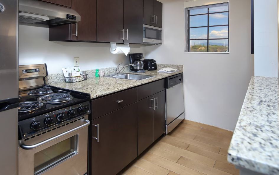 This stylishly extended stay hotel is in the Catalina Foothills with endless shopping, dining and outdoor activities. Feel at home and stay productive while on the road. Thoughtfully designed for longer stays, studios and suites are enhanced for guests’ productivity with a home office, full kitchens, separate living areas and televisions with casting capabilities. Amenities include breakfast buffet, WIFI and new exercise facility, overlooking the outdoor pool, An outdoor barbecue is poolside. Laundry facilities are available. The hotel is pet friendly. With Tucson’s UNESCO City of Gastronomy designation, you’re always close to extraordinary dining options. Enjoy Tucson attractions like the Arizona Sonora Desert Museum, Old Tucson and Pima Air & Space Museum.