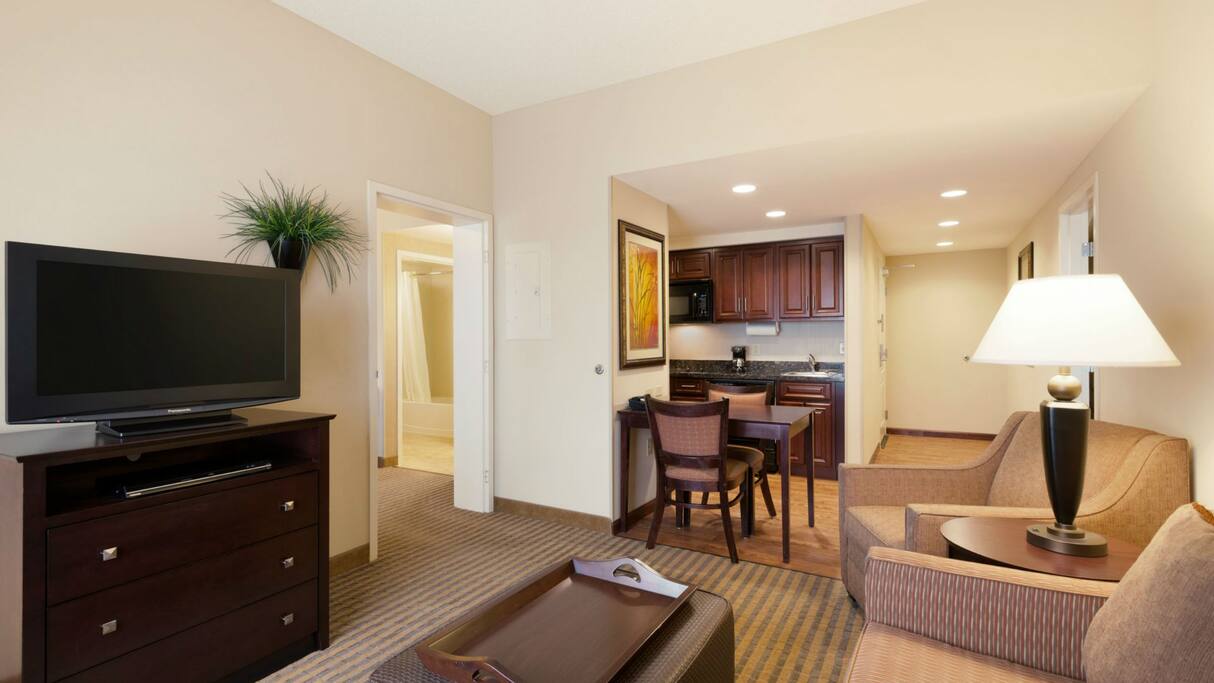 We’re 20 minutes north of Minneapolis and St. Paul, and moments from Blaine, Shoreview and Roseville. From our location near I-35, the National Sports Center, Land O’Lakes, and Medtronic are easy to reach. Finish the day at our free evening social every Wednesday. or with a meal in your in-suite kitchen. WiFi and breakfast are on us.