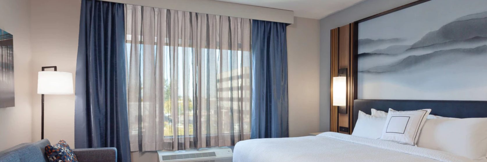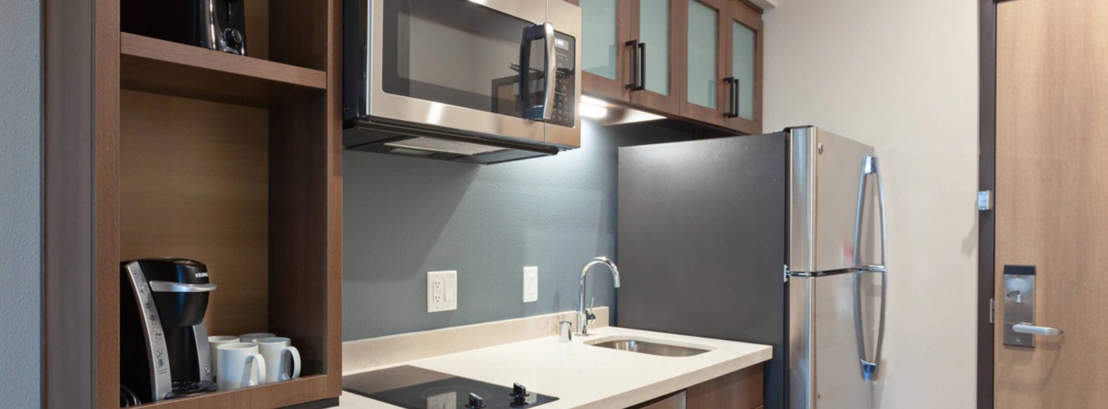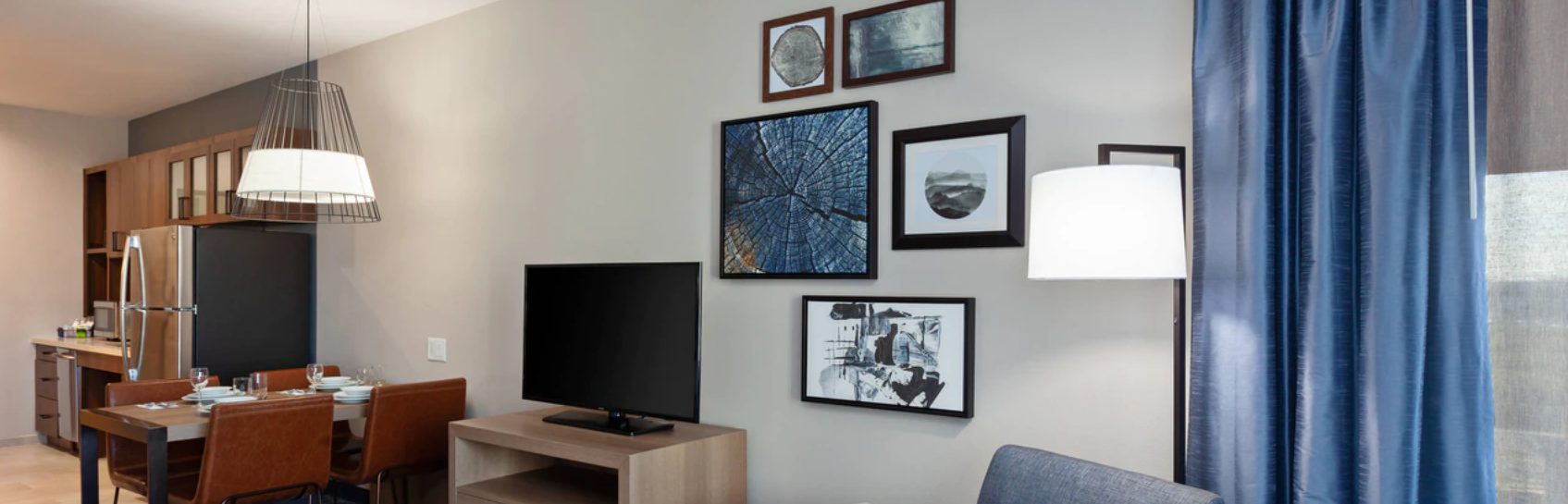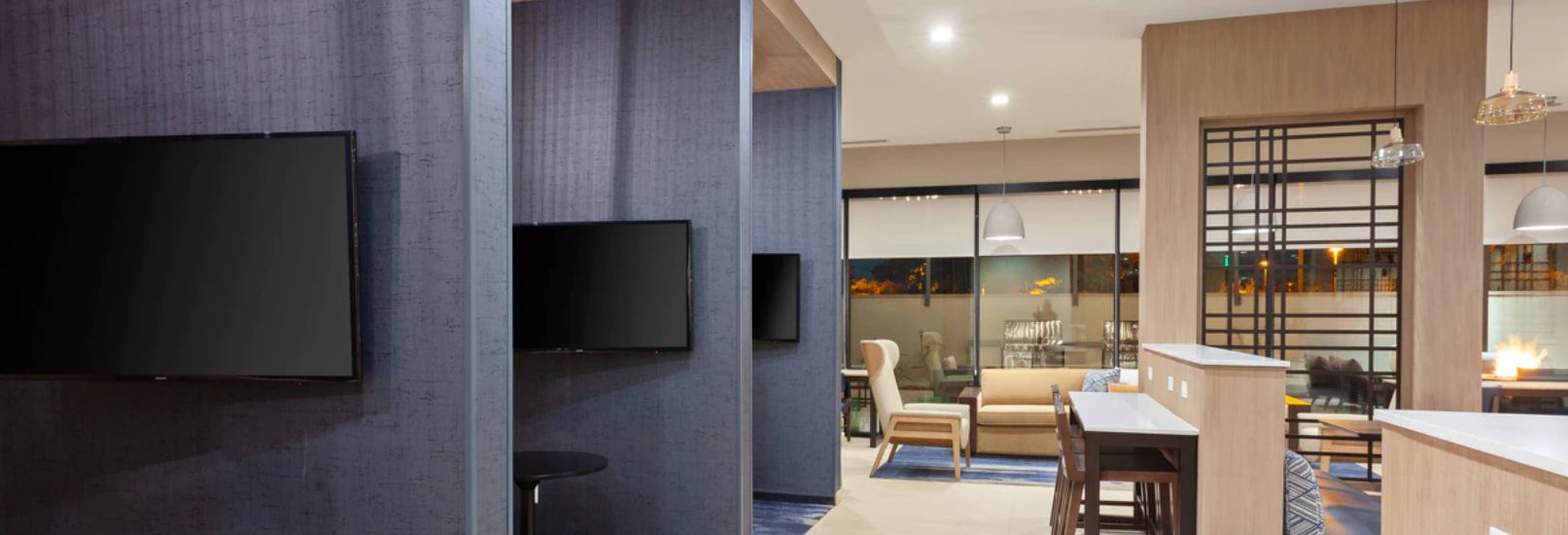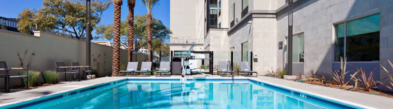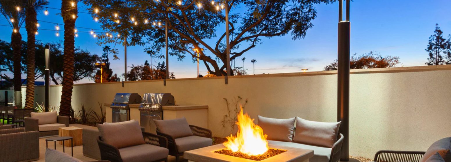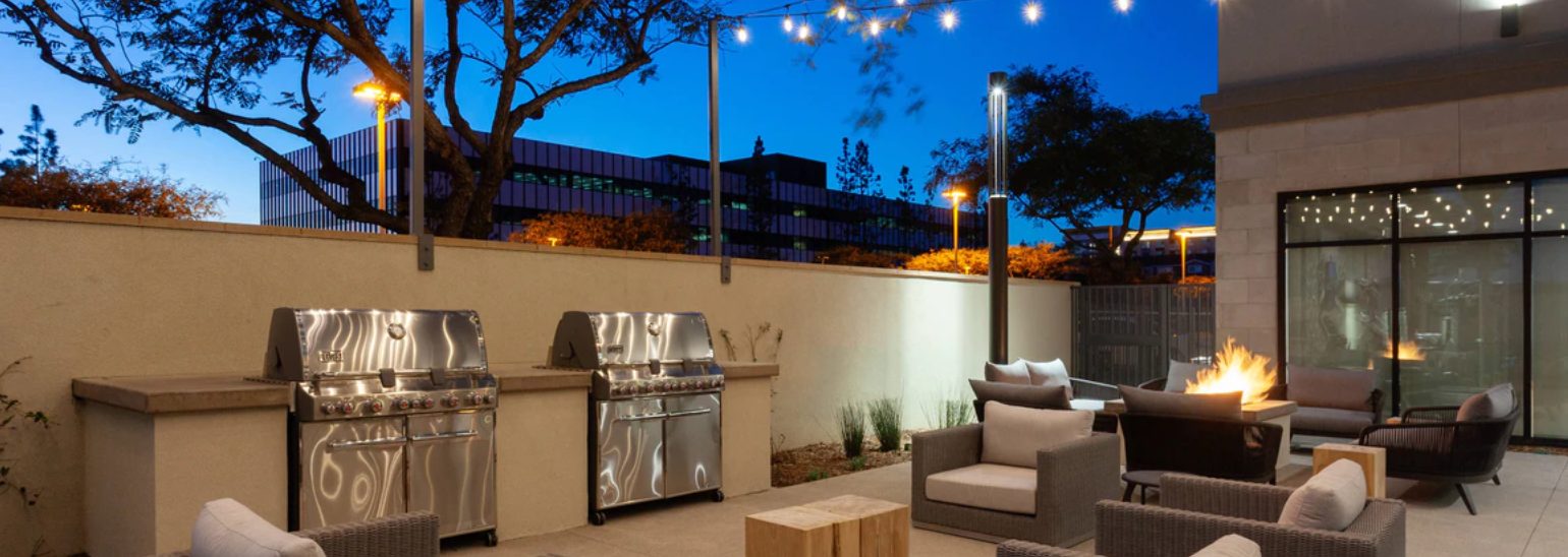 The newly built TownePlace Suites San Diego Central is the perfect base as we are minutes from Gaslamp Quarter, SeaWorld, San Diego Zoo, and the Kearny Mesa business district. Upon entering the lobby, guests will be greeted with an inviting aesthetic of a warm color palette featuring soft neutrals and deeper tones, contrasting with pops of muted turquoise. The decor pieces resemble different global influences appealing to the modern traveler. Elevated details like the built-ins and ceiling design parallel a residential design giving the hotel its home away from home vibe. Our pet-friendly hotel offers spacious king and double queen studio suites, comfy beds, The Container Store closets and full kitchens. The addition of free Wi-Fi connected Smart TVs, free American Hot breakfast buffet, and adjustable work spaces are great for extended hotel stays in San Diego. The TownePlace Suites San Diego Central offers convenience with various food options nearby and ana patio with Fire Pit, Outside pool and Weber BBQ's