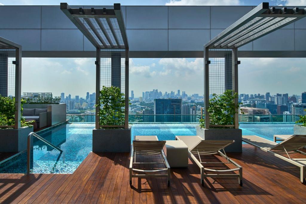 Discover your passion at Courtyard Singapore Novena, a 4-star hotel situated in Singapore’s city center. Our hotel is connected to Novena MRT/subway station and offers easy access to Singapore's main attractions like Little India, Gardens by the Bay, and Sentosa. Spacious rooms offer panoramic views from floor-to-ceiling windows. They feature plush bedding, flat-screen TVs, and free Wi-Fi. Our hotel offers a gym and a rooftop infinity pool. After a busy day in Singapore, you can indulge in a refreshing drink at our Urbana Rooftop Bar, or sample delicious international and local dishes at the all-day dining restaurant, Sky22. Those planning an event in Singapore can select from meeting rooms with natural light or an outdoor rooftop venue for an occasion to remember. Other features include room service, laundry/dry cleaning, and car rental. Our location next to two Novena malls offers quality shopping and multiple dining options.