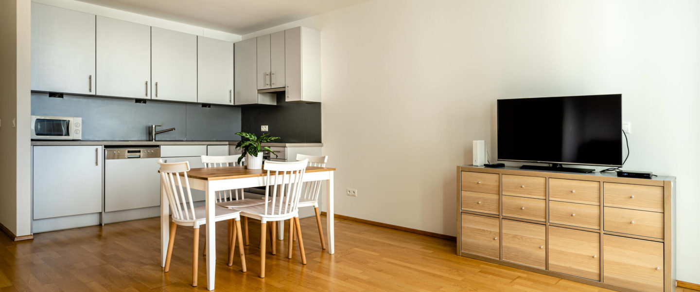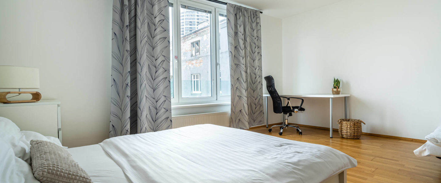 This spacious 1-bedroom apartment offers a modern space in an ideal location within Old town. Divided into one separate room for rest and living room intended for relaxation and work, the apartment ensures all comforts of your own home. After an exhausting day you will love drinking a glass of wine at the balcony oriented to the quiet backyard. Conveniently located between quiet Medical garden and popular Eurovea Shopping Mall, this residential area will show you many faces of Bratislava’s everyday life. The nearby streets experience boom of authentic local cafes, while 10 minutes pleasant walk will take you to the historical city centre. For business travellers, all strategic business centres such as Twin City or CBC are just around the corner. Perfect for families, couples or corporate clients, this apartment puts a wide range of amenities at your door.