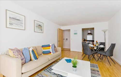 South Lotts, a perfect, quiet stay in Dublin, awaits corporate travelers with its bright, airy, and sophisticated interiors. Enjoy a dinner on the Grand Canal a mere block away or a musical at the nearby Bord Gáis Energy Theatre. Featuring luxurious hardwood floors and large windows, a stylish kitchenette and views of the city’s grand modern architecture, enjoy the bustling city of Dublin with your quiet, homey stay at South Lotts.