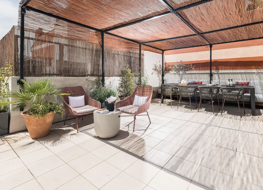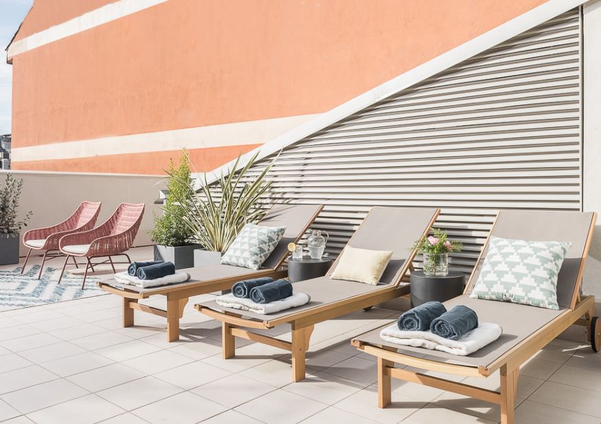 The chic rooftop terrace not only has an amazing view of the city skyline but was designed with areas for relaxing, dining, and working. The apartment itself has all the modern amenities you need and is centrally located in the coveted Eixample neighborhood. Renowned as 2020’s coolest neighborhood in the world, Eixample has many grand parks, museums, tapas bars, and boutique stores along its cobbled streets. Enjoy this apartment’s ideal location and explore all the major sights in Barcelona that are close by. You can also relax at home in this naturally illuminated space that features an elegant yet comfortable design. Points of Interest:Culture: There are many parks within walking distance, such as Turó Parc and Parc de Joan Miró. Less than 15 minutes down the street are also iconic buildings designed by Antoni Gaudí like Casa Milá (also known as La Pedrera) and Casa Batlló. You can also visit the cultural center and contemporary art museum Fundació Antoni Tàpies. Shopping: Around the corner is the Mercat del Ninot where you can find a variety of fresh produce stalls. You can also walk to the Rambla Cataluña, Paseo de Gracia, or wander through the surrounding streets to find boutiques and brand stores. Food/Drink: The previously mentioned Mercat del Ninot is also home to many eateries and tapas bars. This historic zone also has many cafes, pubs, and restaurants lining its 19th-century streets.